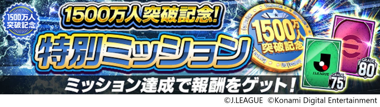 株式会社コナミデジタルエンタテインメントは、モバイルゲーム『Jリーグクラブチャンピオンシップ』の登録会員数1500万人突破を記念して、特別なキャンペーンを開催しています。