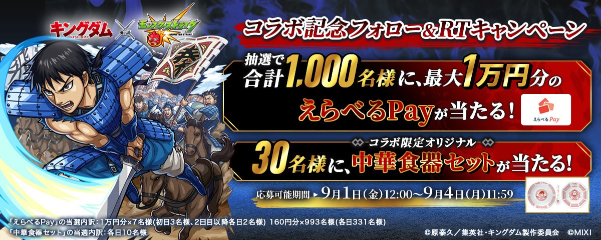 - 株式会社MIXIが「モンスターストライク」とTVアニメ『キングダム』のコラボを開催