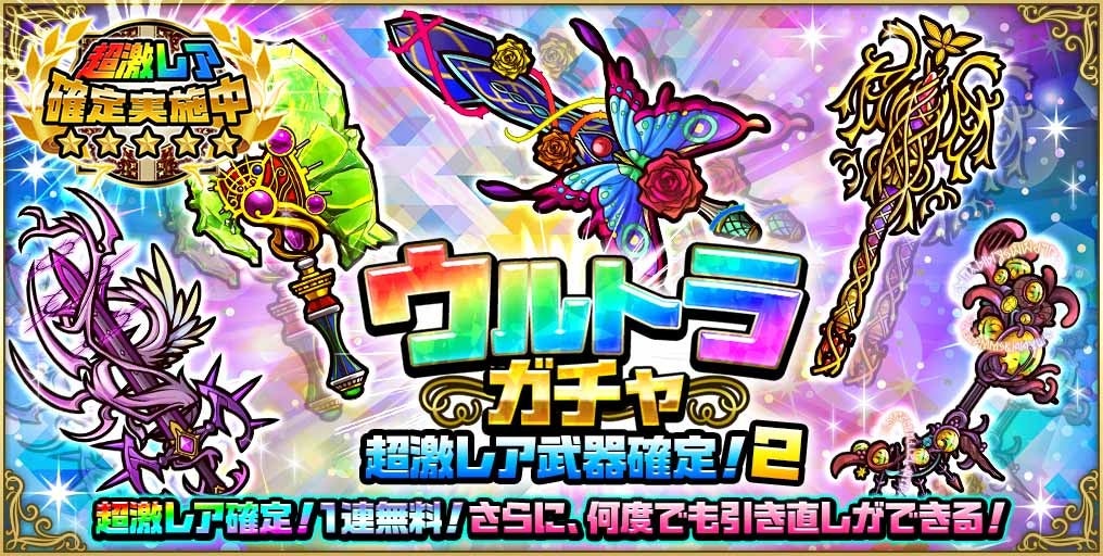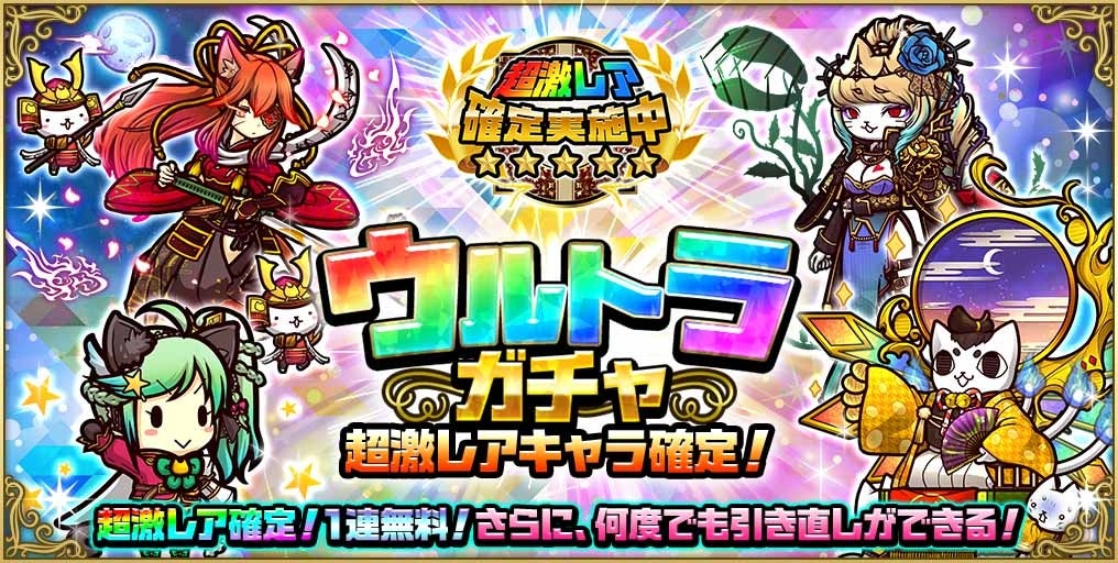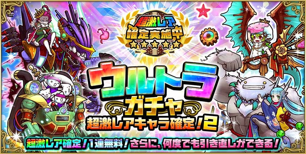 - ウルトラガチャは超激レア確定で何度でも引き直し可能な夢のガチャ