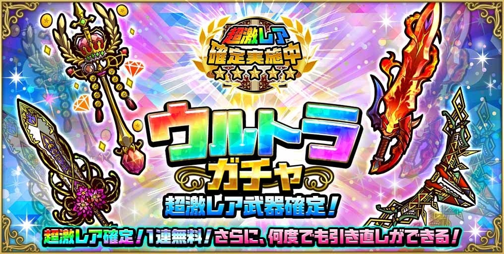 ウルトラガチャは、超激レアアイテムが確定で手に入る夢のガチャで、何度でも引き直しが可能です。