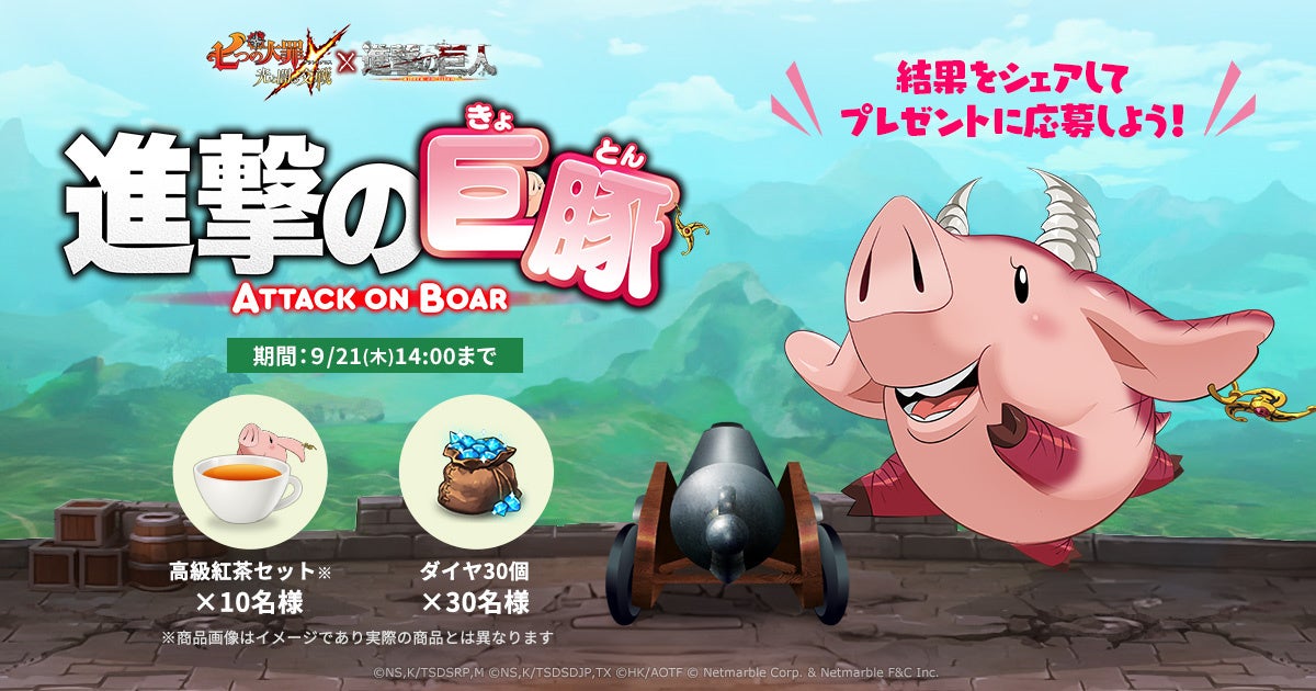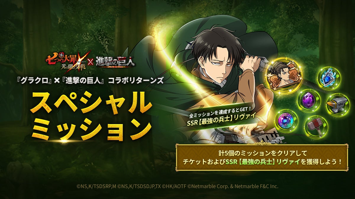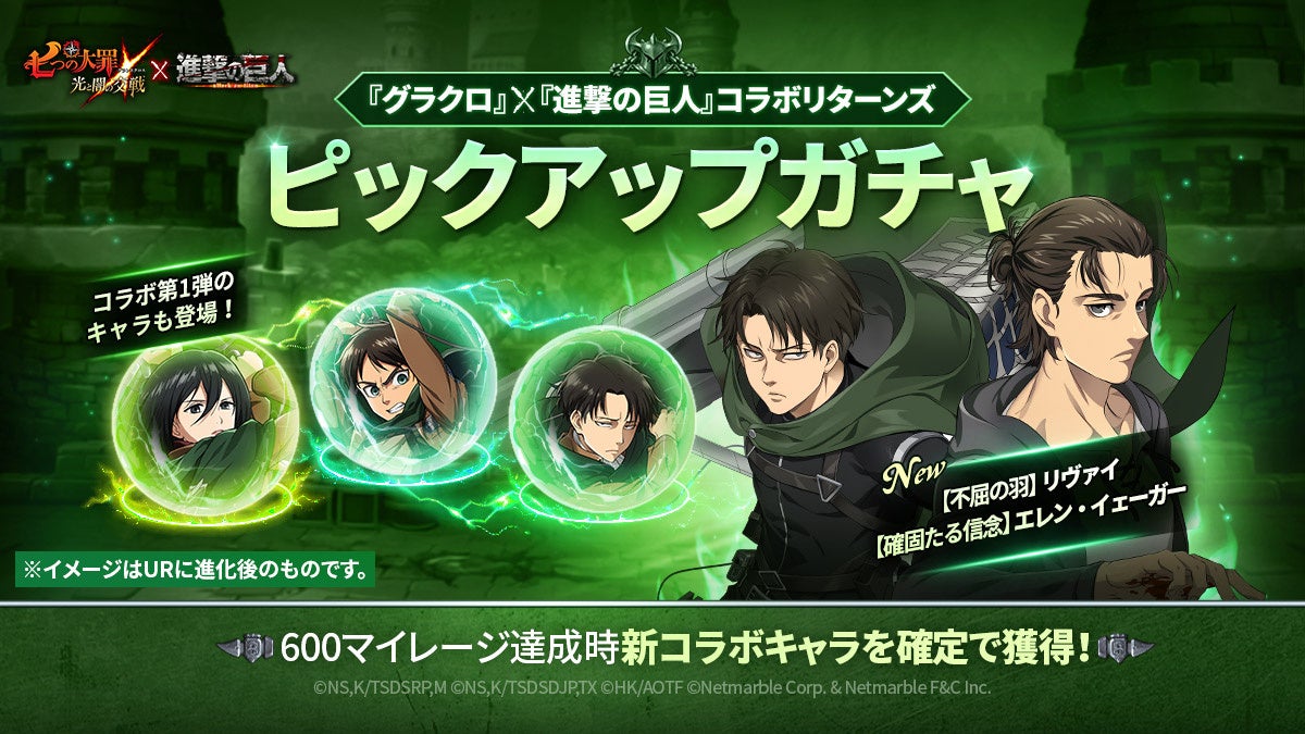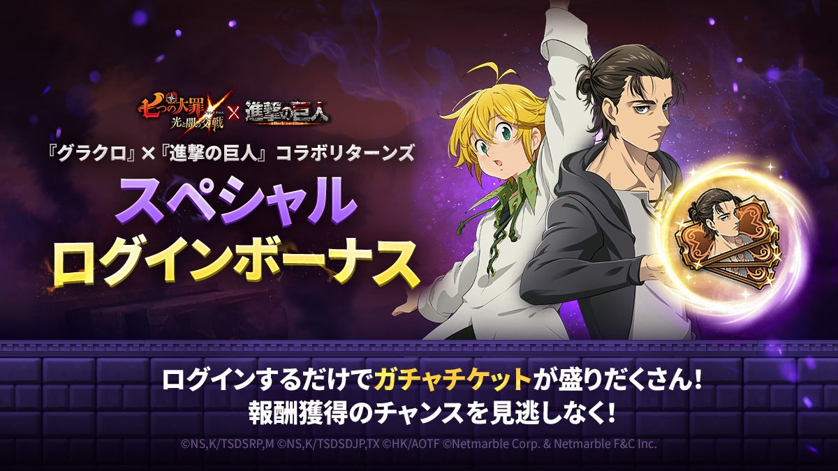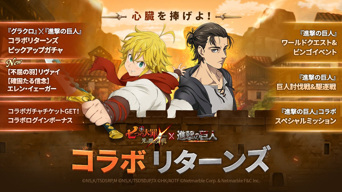 - ネットマーブルが『七つの大罪 ~光と闇の交戦~』で「進撃の巨人」とのコラボイベントを開始