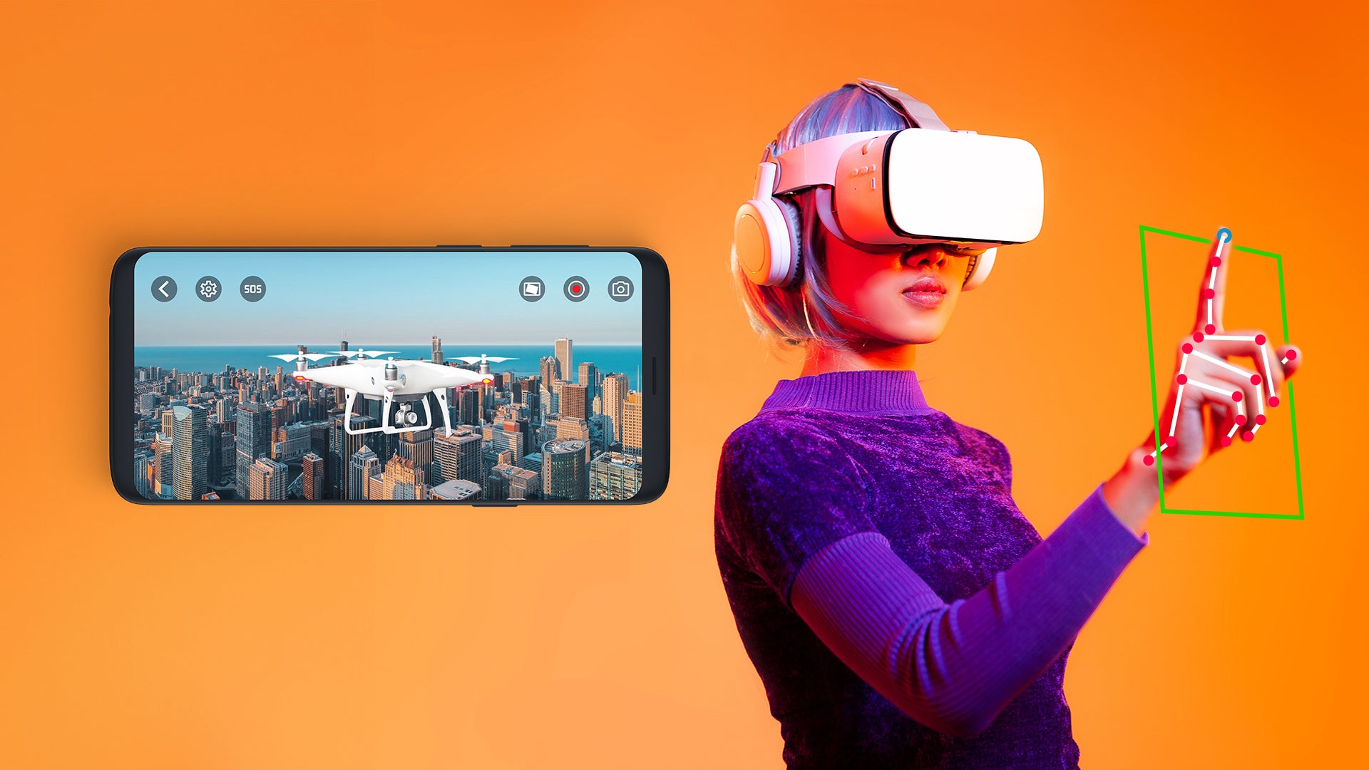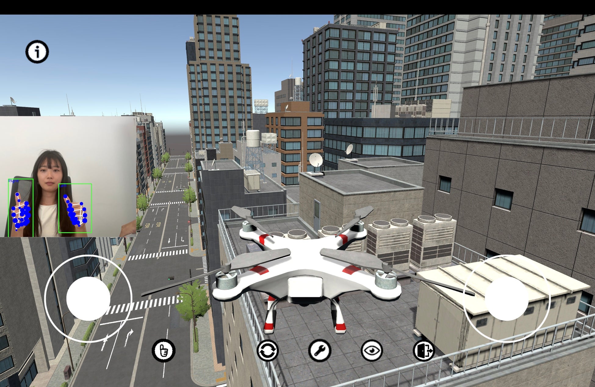このゲームでは、画像認識AIを活用したハンドサインによる直感的な操縦インターフェースを使用し、スマホやPCからドローンを操縦することができます。