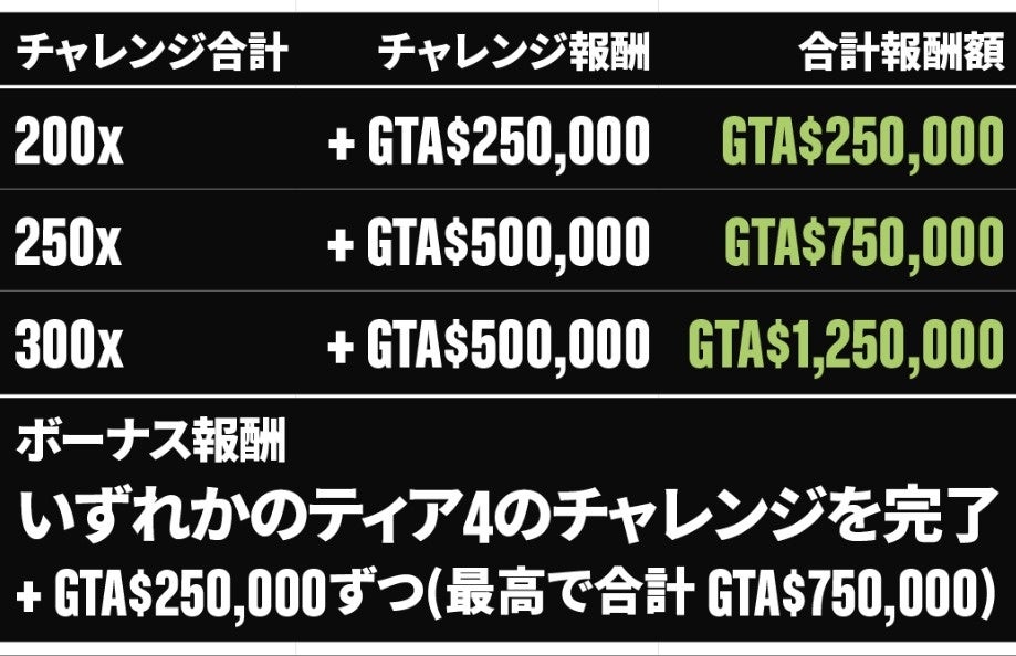 - チャレンジ成功で日本のプレイヤー全員にGTAマネー200万ドル贈呈