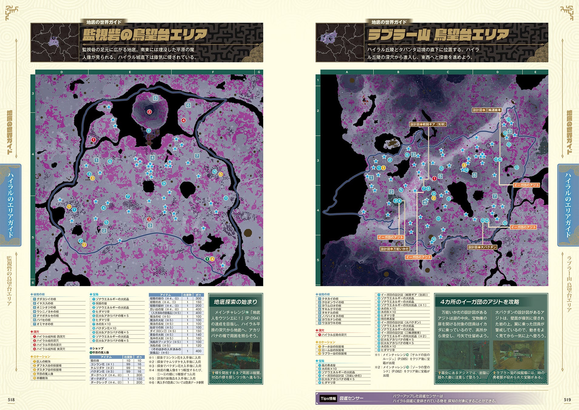 さらに、基礎知識やゾナウギアの解説、ハイラルのエリアガイド、データ攻略なども掲載されています。