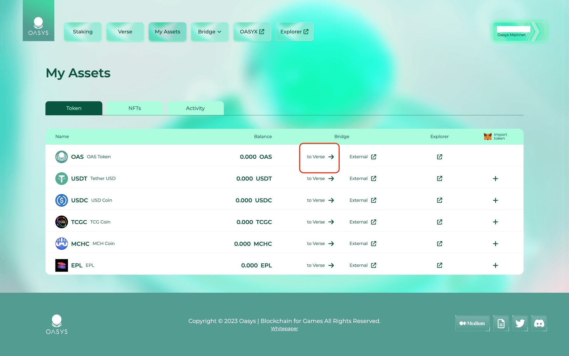 SBINFT Marketでは、ゲーム特化ブロックチェーン「Oasys」上のVerse layer「TCG Verse」に対応し、$OASでのNFT取引が可能になります。