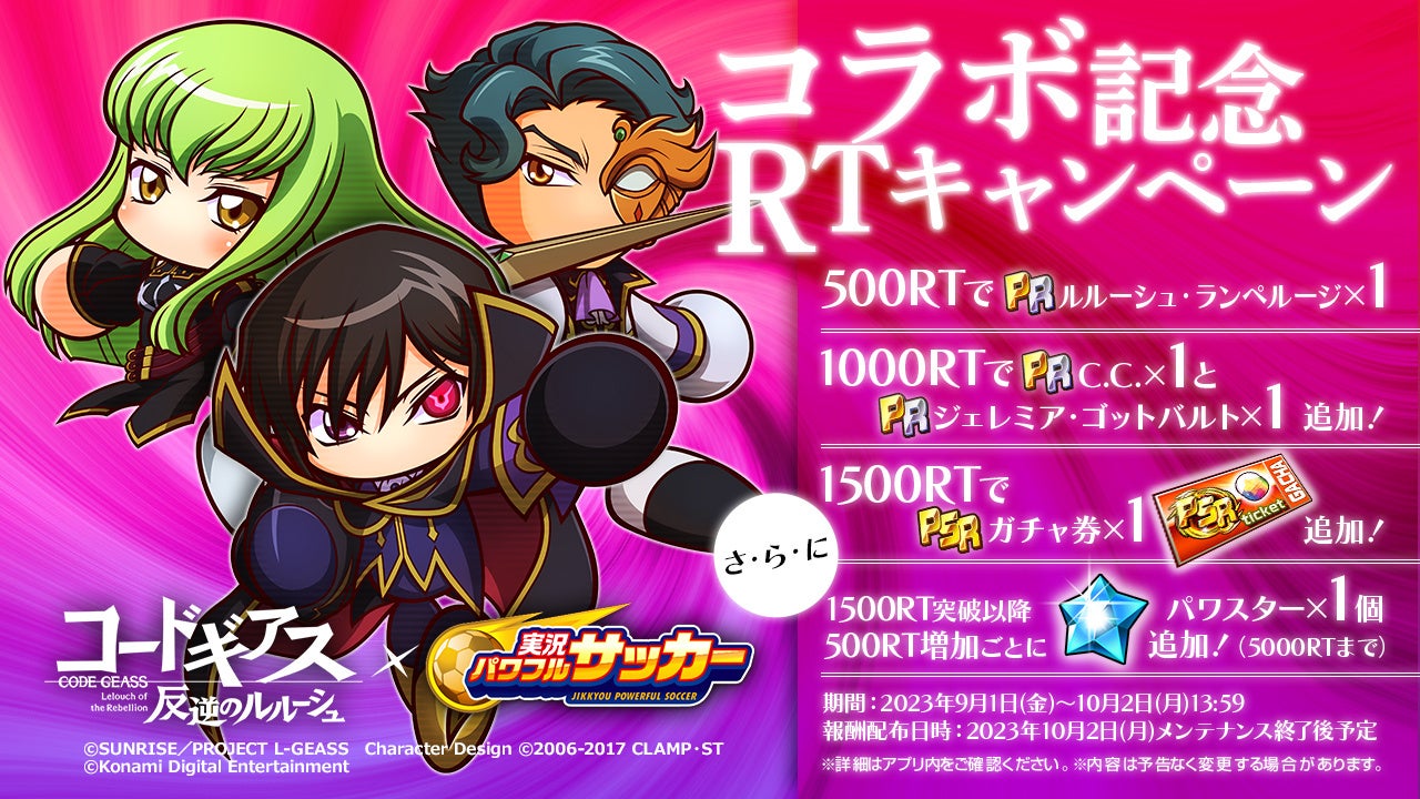 株式会社コナミデジタルエンタテインメントは、本日9月1日からモバイルゲーム『実況パワフルサッカー』とテレビアニメ「コードギアス 反逆のルルーシュ」とのコラボレーションを開始しました。