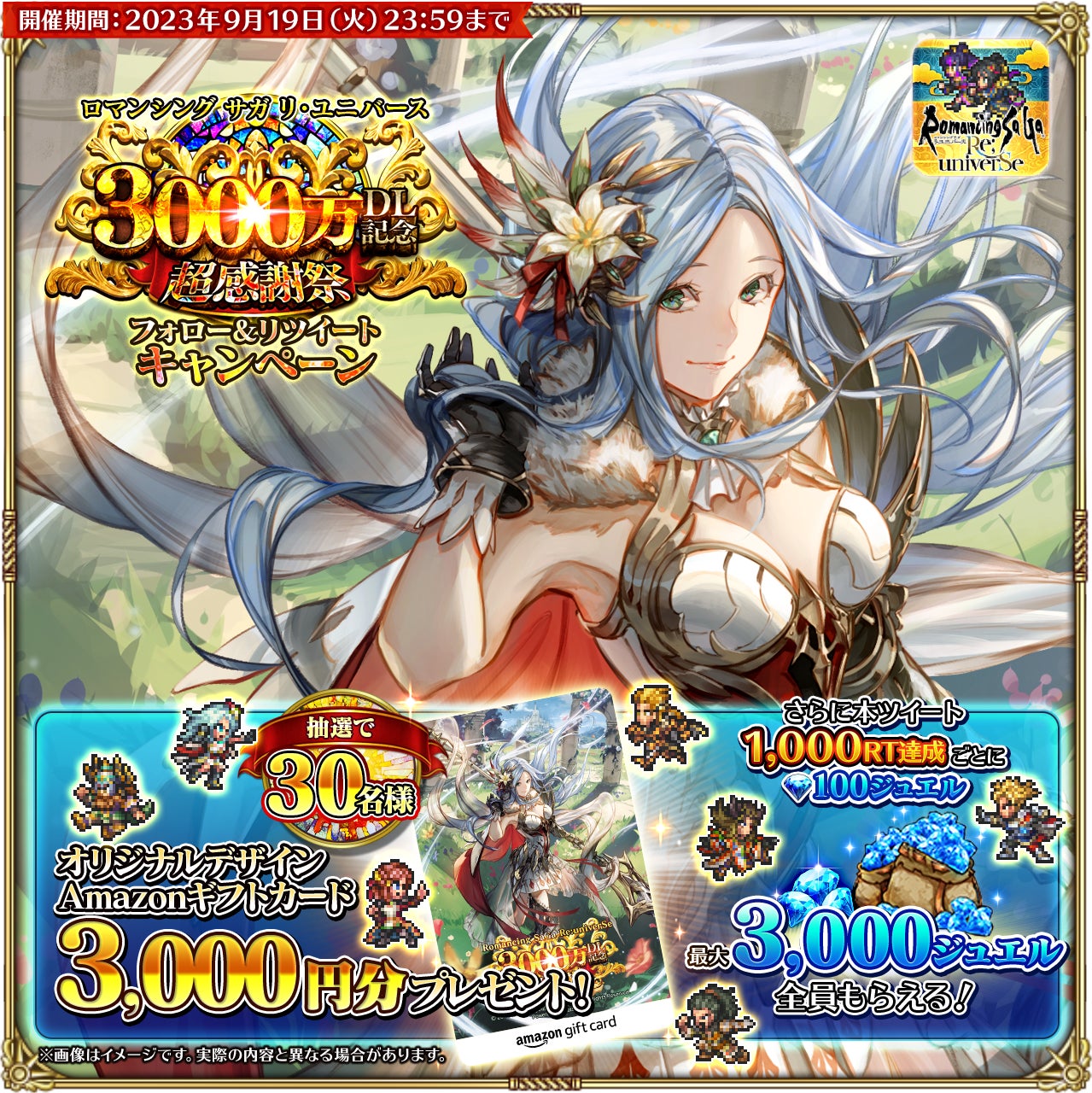 株式会社アカツキゲームスは、「ロマンシング サガ リ・ユニバース」のダウンロード数が3000万を突破したことを発表しました。