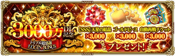 これを記念して、「3000万DL記念 超感謝祭 第1弾」が開催されます。