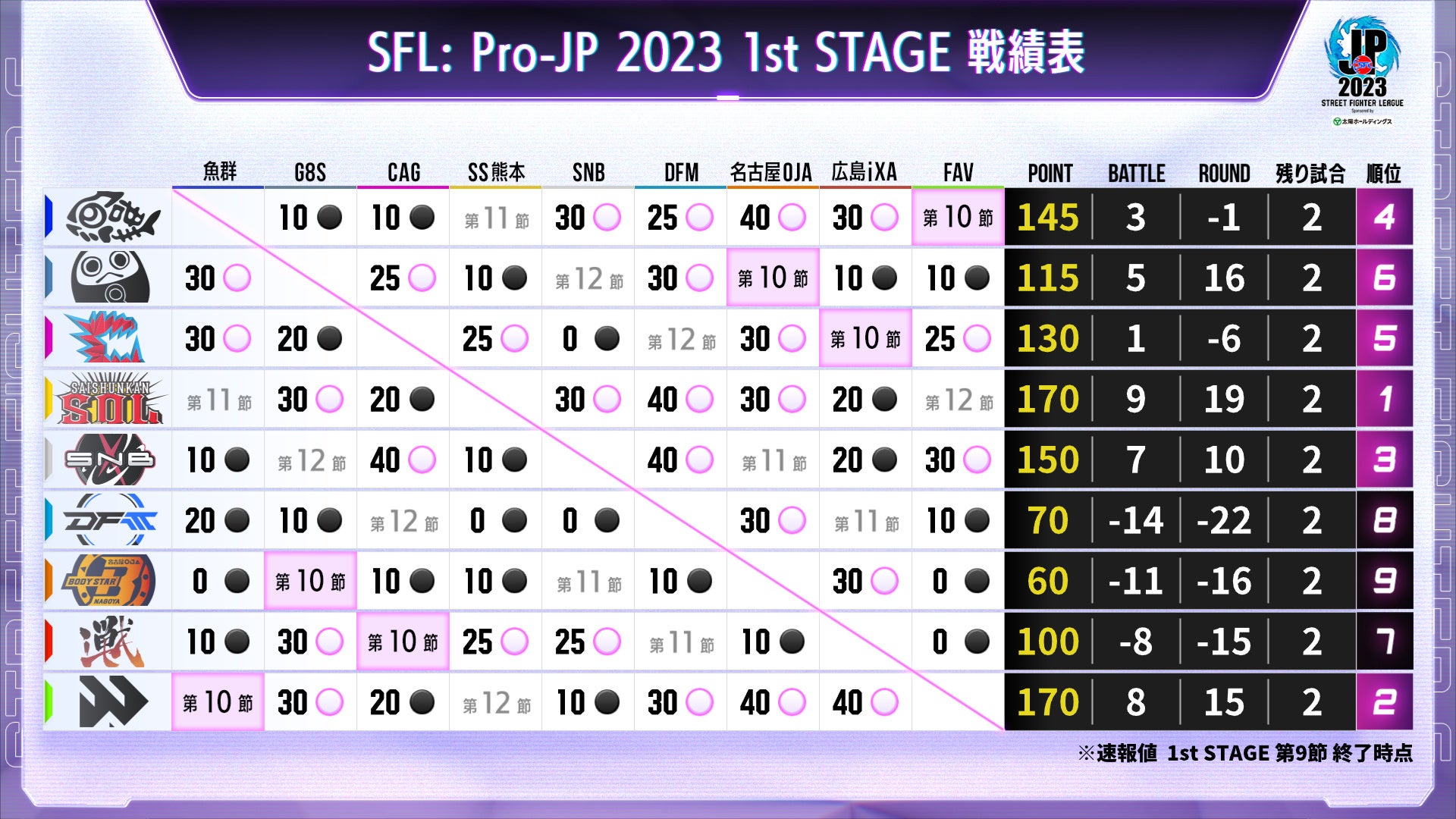 - 9月1日に行われた1stステージ 第9節の試合速報が掲載されています。