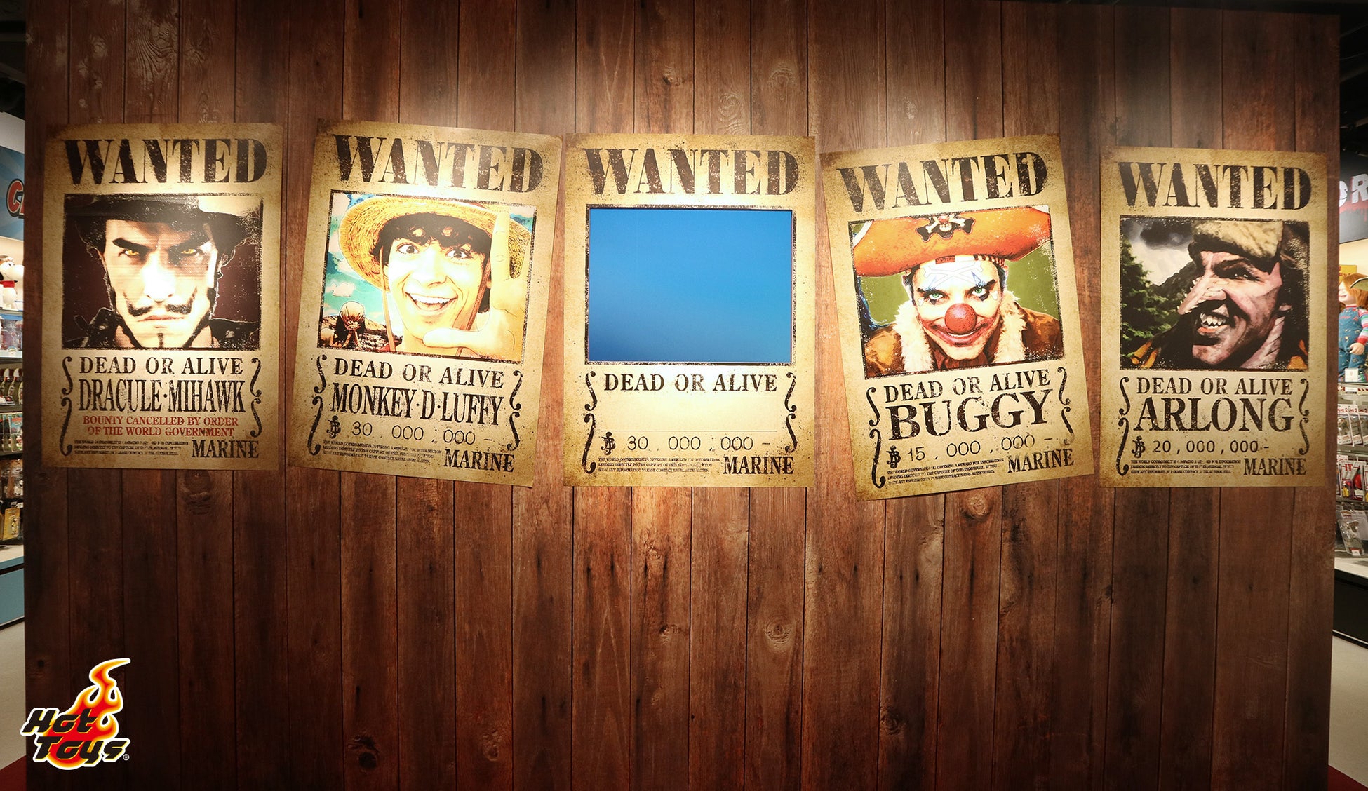 店内は実写版『ONE PIECE』の世界をイメージしており、麦わらの一味の等身大パネルや手配書ポスターの顔出しパネルなどが展示されています。