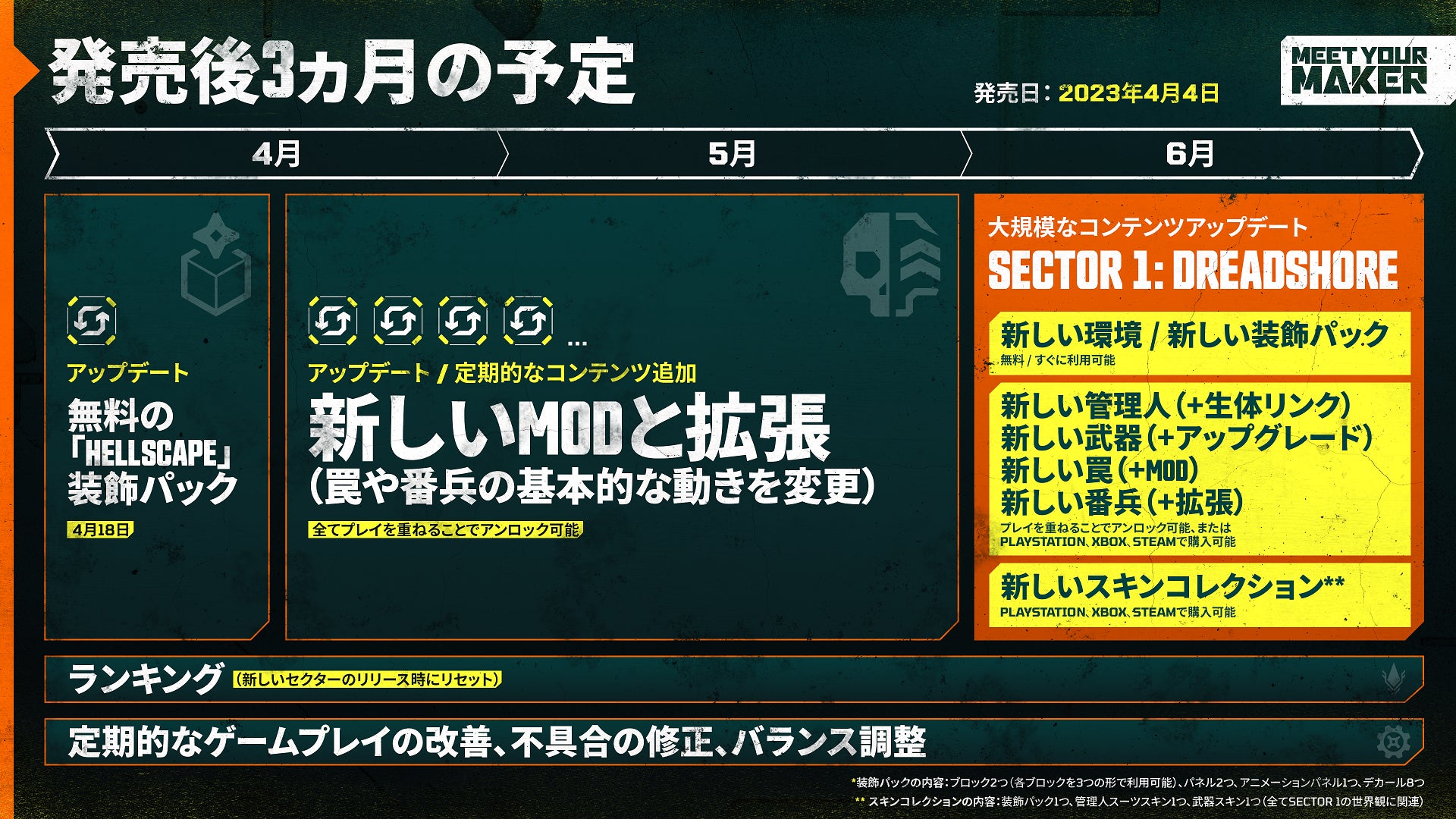 ゲームプレイ要素も定期的に追加され、2023年6月下旬には初の大規模なコンテンツアップデート「セクター1:ドレッドショア」が登場予定。
