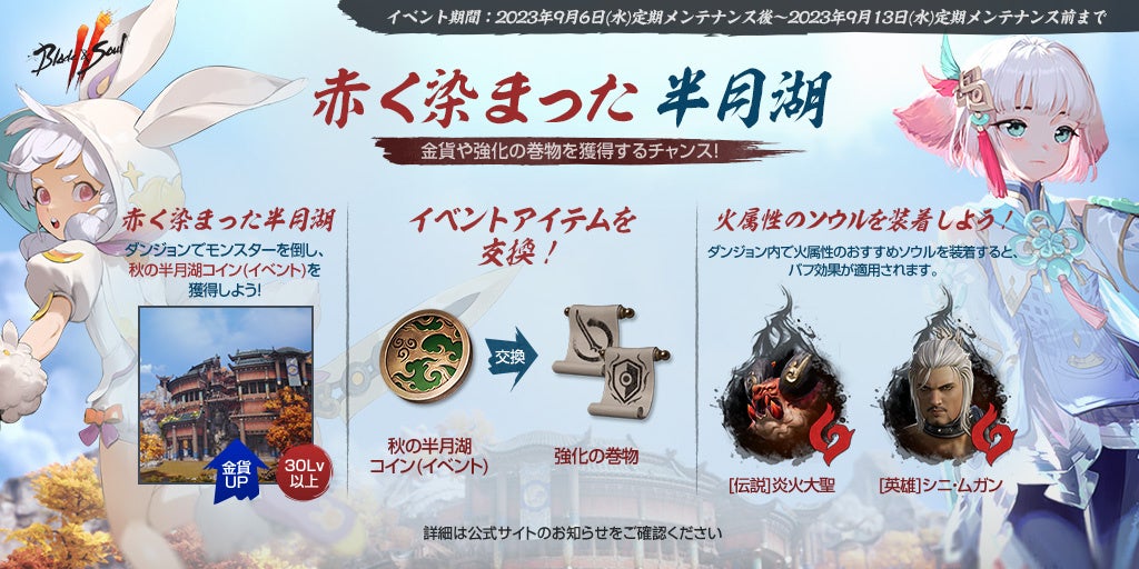 また、「赤く染まった半月湖」というイベントダンジョンも登場し、金貨や「秋の半月湖コイン(イベント)」を獲得できます。