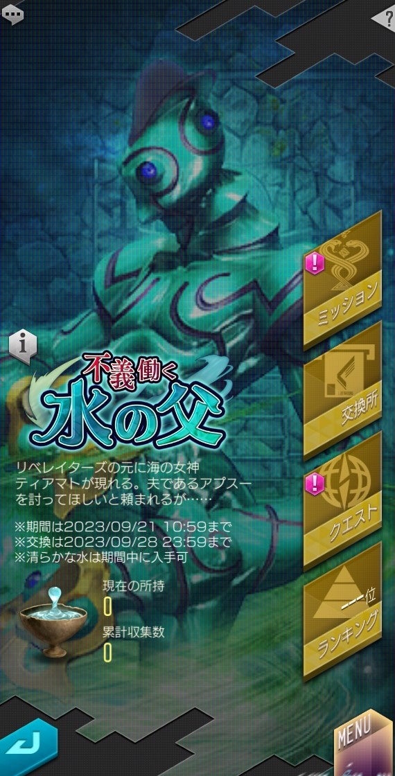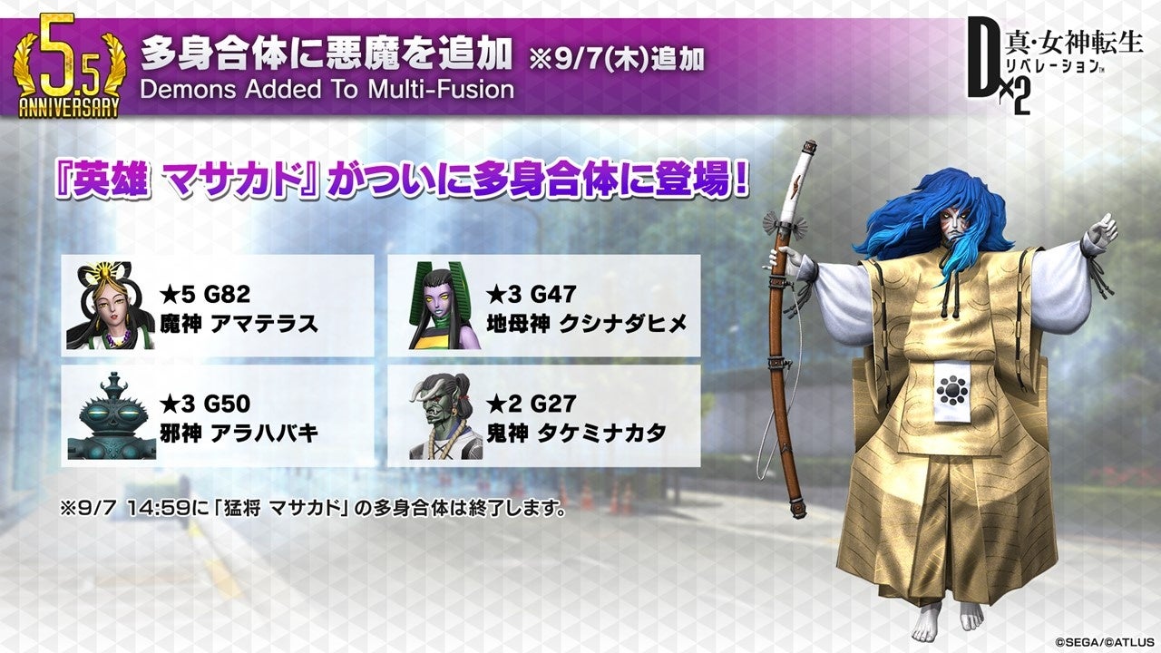 同時に、ランキングイベント“不義働く水の父”も始まり、★5悪魔「魔王 ルシファー」と「英雄 マサカド」の強化や、「英雄 マサカド」の多身合体が追加されました。