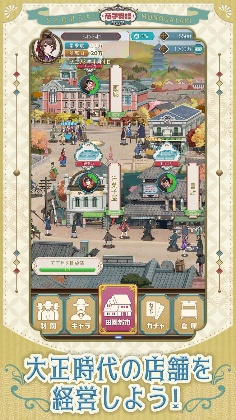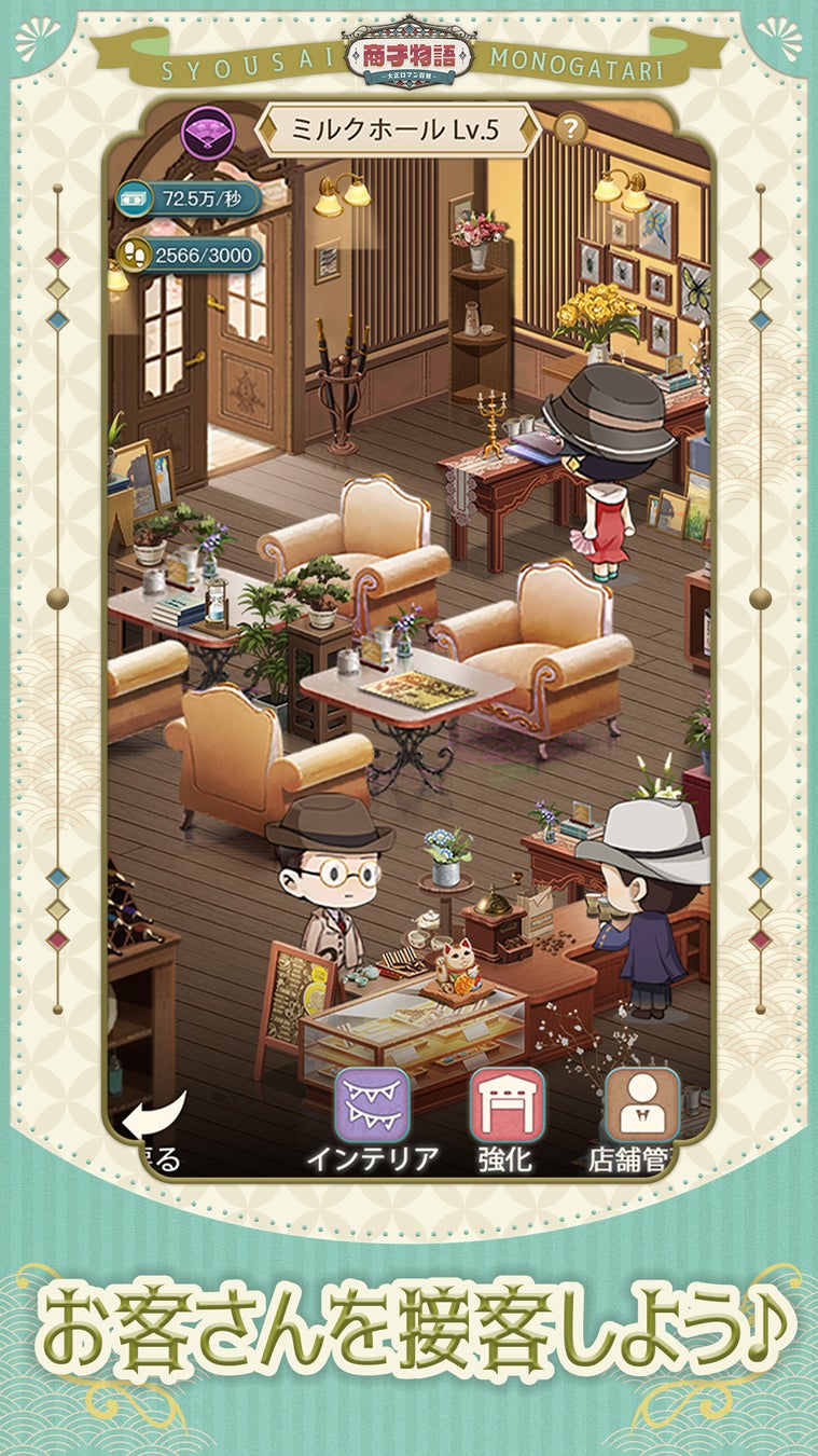 このゲームは、大正時代のレトロな世界観で店舗経営を楽しむことができます。