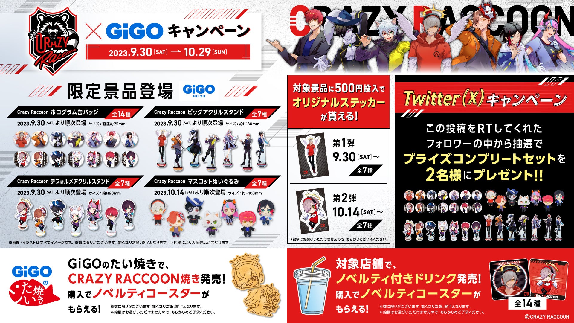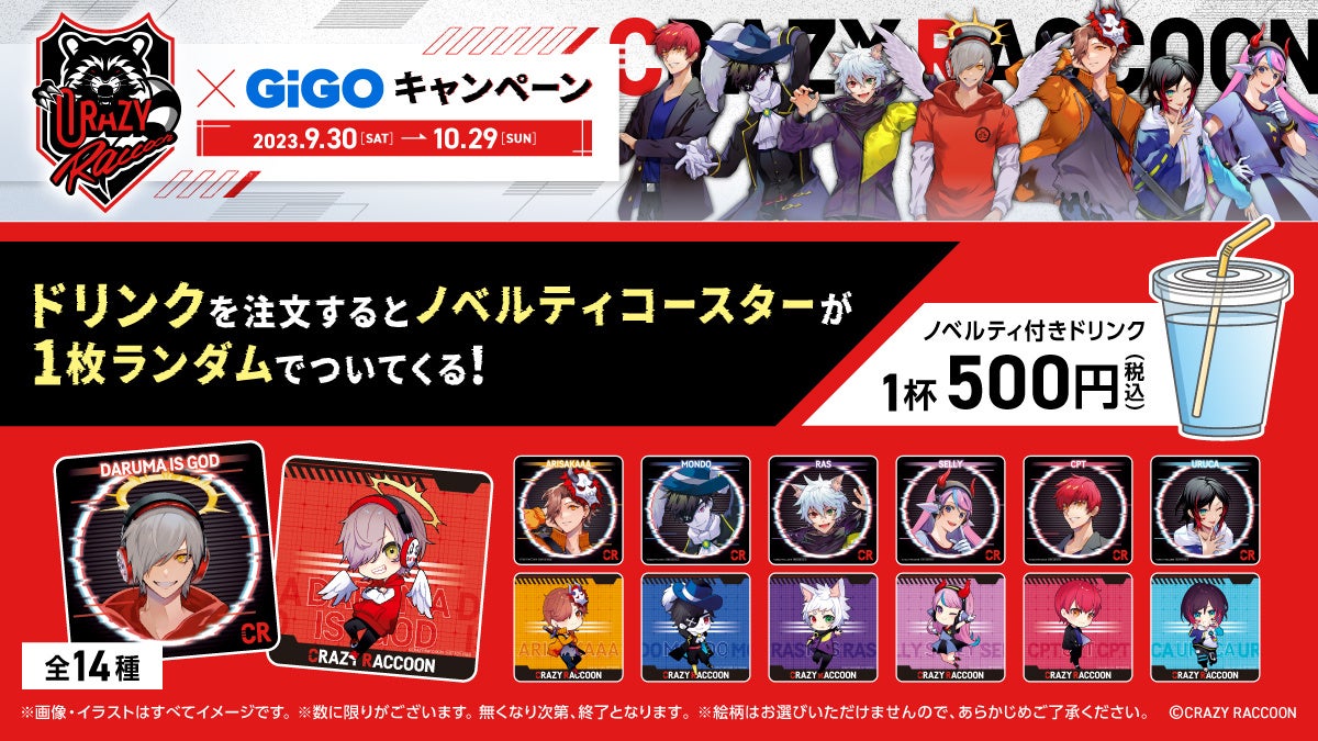 GiGOグループのお店では、2023年9月30日から10月29日まで、プロゲーミングチーム『Crazy Raccoon』とのコラボキャンペーンを開催します。