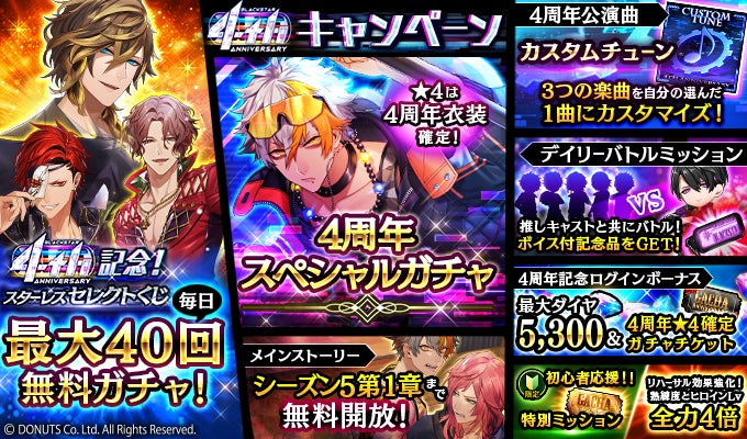 株式会社DONUTSが運営するスマートフォン向けアプリゲーム『ブラックスター -Theater Starless-』が、2023年9月10日にリリース4周年を迎えます。
