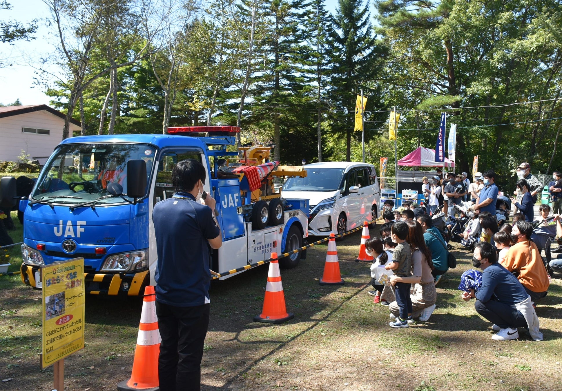 - JAFの役割や活動内容をPRするための展示や体験乗車、デモンストレーションなどが行われる
