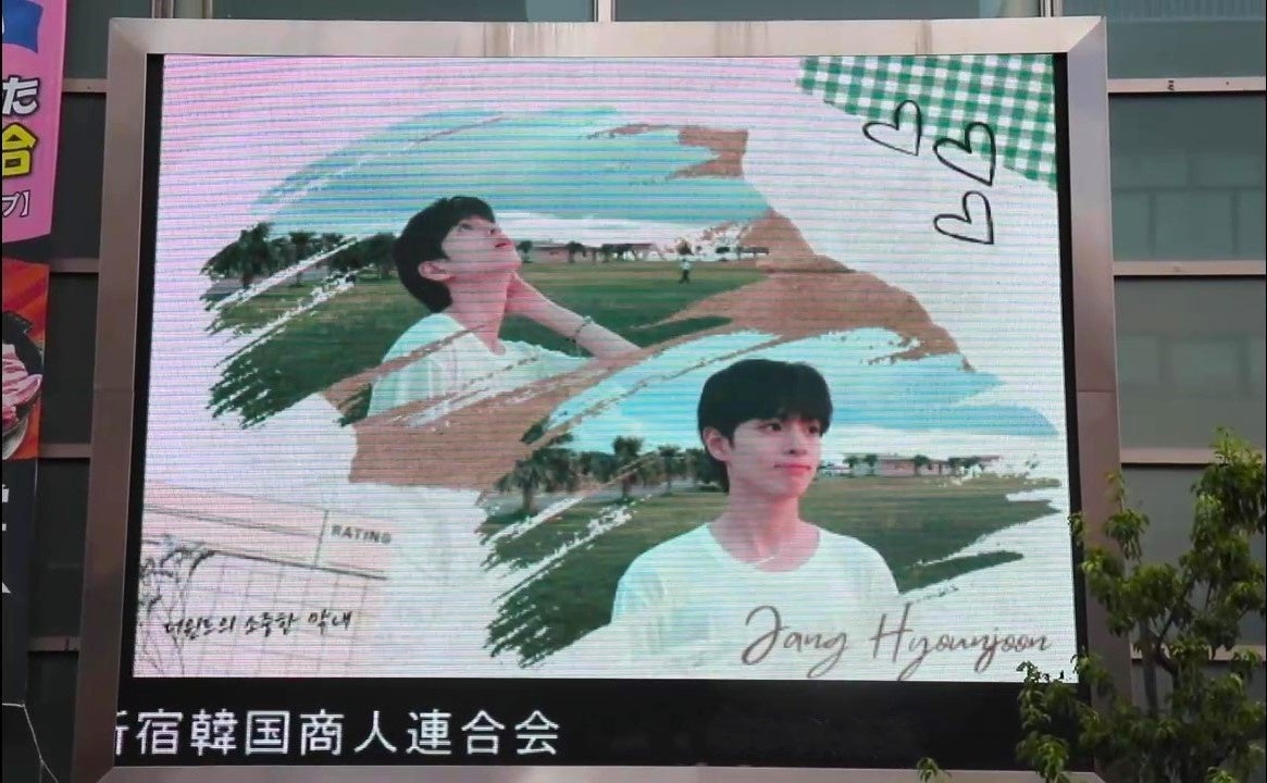 - 新大久保のKPLAZA 1号館の屋外ビジョンでもThe WindのJang HyounJoonさんの応援広告が上映されている