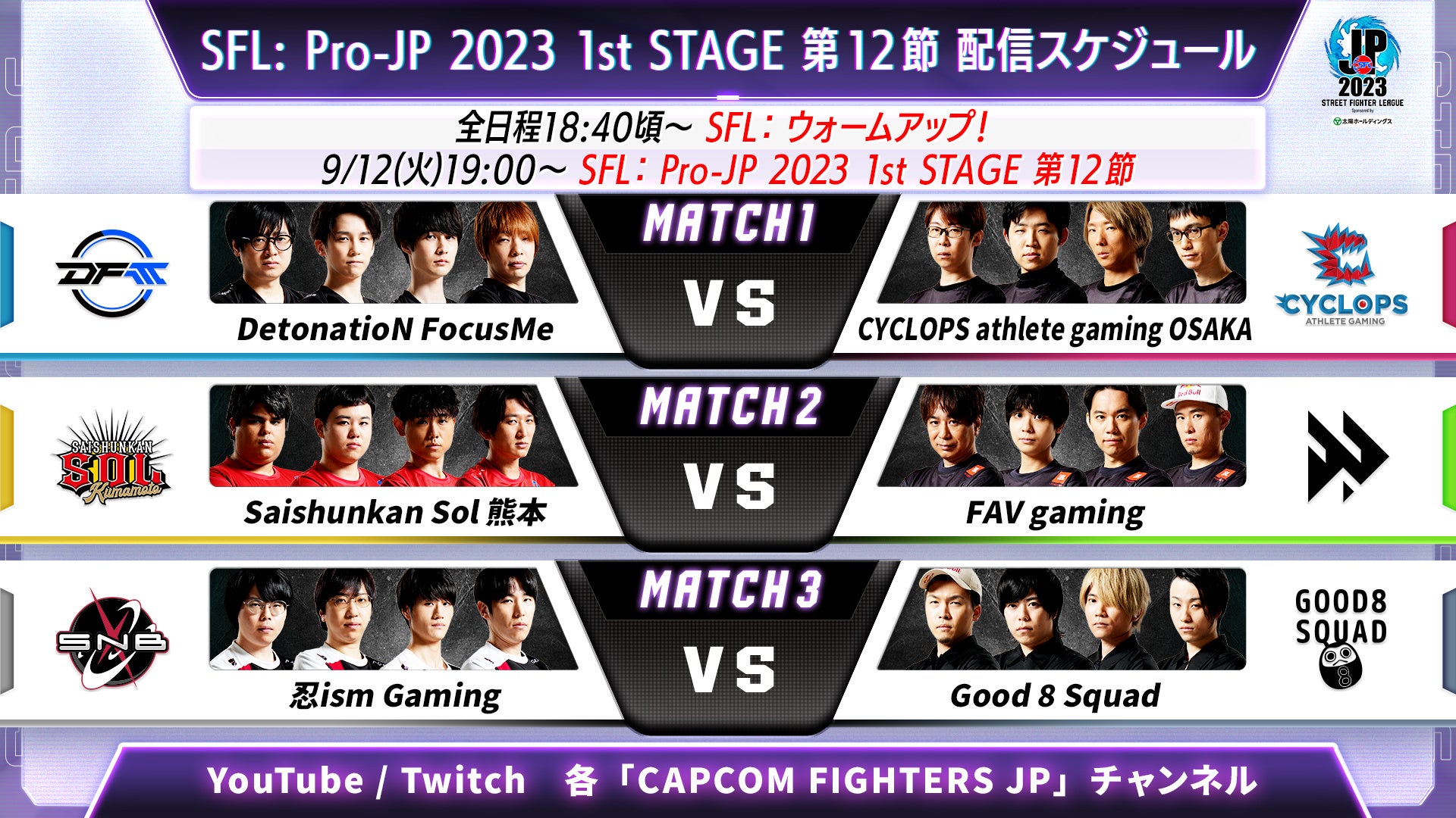 試合の視聴はCAPCOM Fighters JPの公式YouTubeとTwitchチャンネルで行われます。