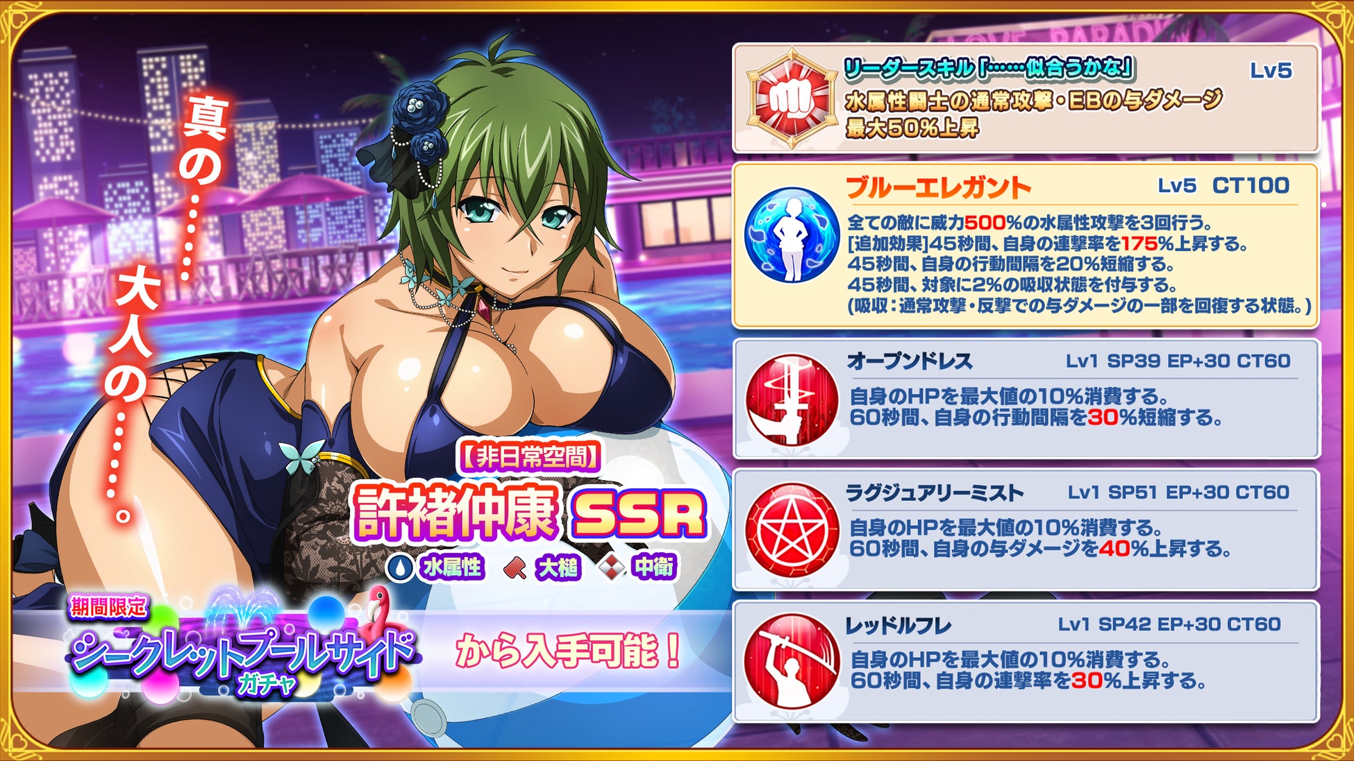 - イベントでは新キャラ「許褚仲康」と限定SRキャラ「【レディの証】曹仁子孝」が登場