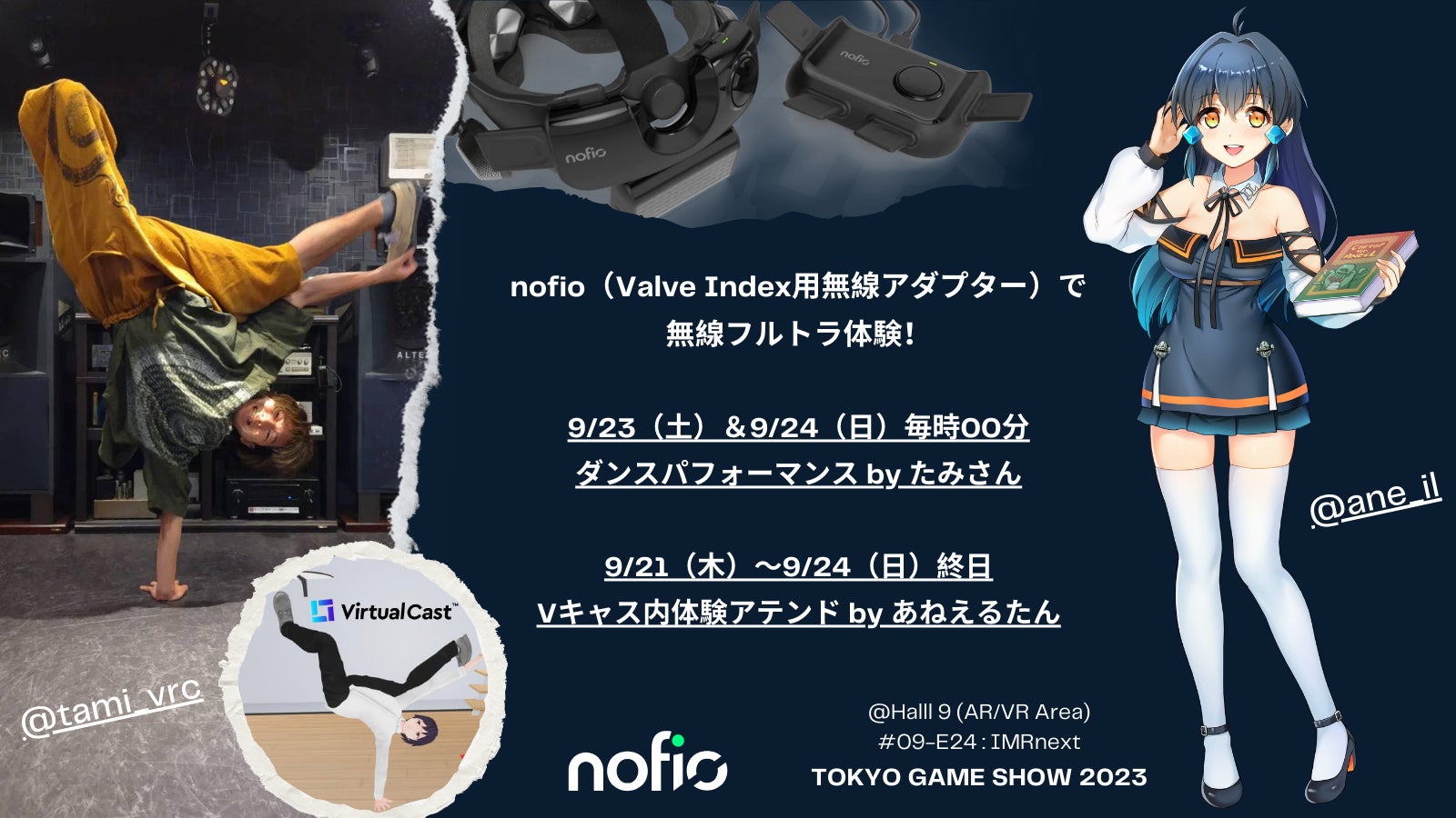 具体的には、PlayStation 5と55インチ4Kテレビの間を無線化するソリューションや、Valve Index用の無線アダプター「nofio」を使用したPCVR用無線フルボディトラッキングなどがあります。