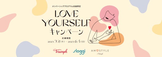 トリンプメンバーシッププログラム会員の方、新しく会員登録 いただいた方にうれしいお知らせ!抽選で、総勢3,000名様以 上に”LOVE YOURSELF”なご褒美ギフトが当たるプレゼント キャンペーンを実施中です。公式アプリではお客様の保有ポイ ントや購入履歴が簡単にチェックできるほか、フィッティング データも保存できます。この機会にぜひご登録ください。