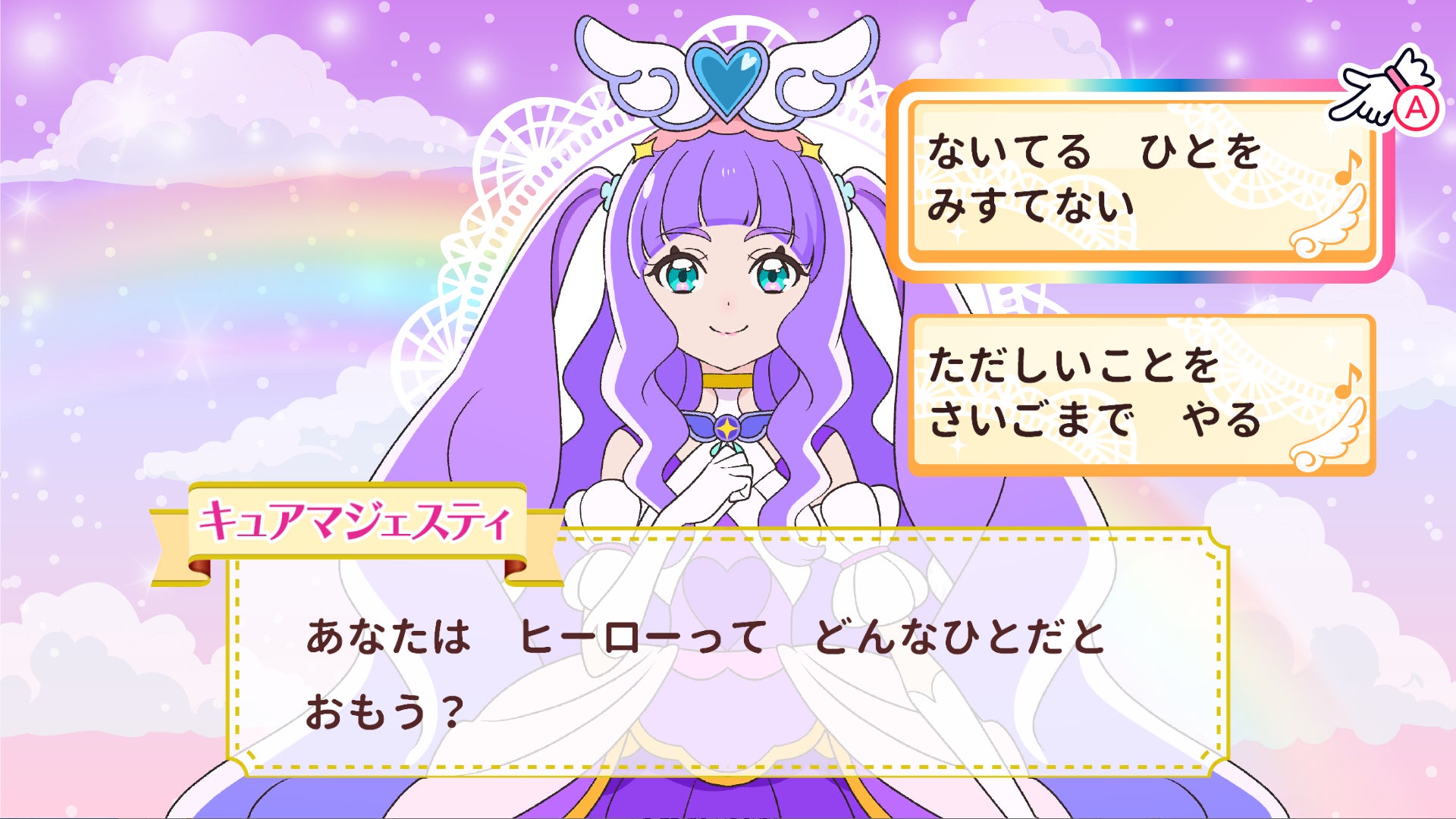 新キャラクター「キュアマジェスティ」と【おはなし】が追加され、テレビアニメ「ひろがるスカイ!プリキュア」の5人目の戦士として登場します。