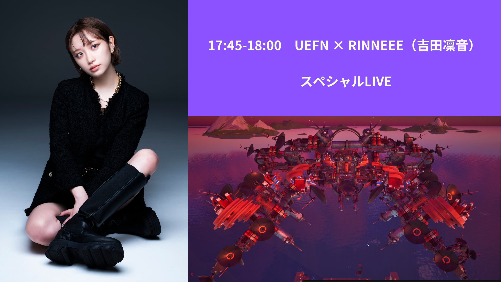 GLITCH RAVEの新MAPでは、アーティスト RINNEEE(吉田凜音)との新曲コラボが実現!イベントではUEFNを活用し、ここでしか見られないRINNEEEのスペシャルLIVEをお届けします。