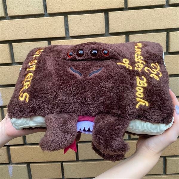 『ハリー・ポッターとアズカバンの囚人』に登場するホグワーツ魔法魔術学校で使われる教科書「怪物的な怪物の本」をイメージしたクッションです。