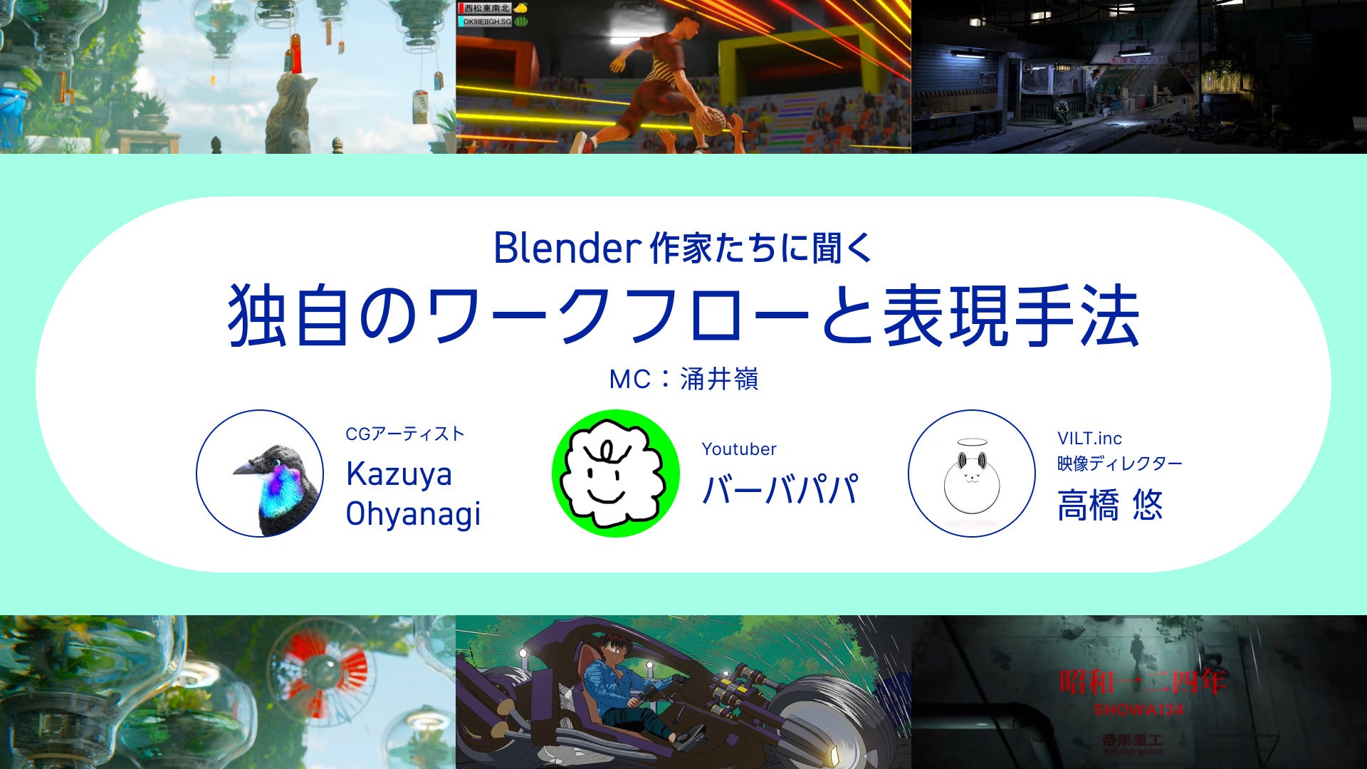 このイベントでは、VFXアーティストの涌井嶺氏や漫画家の浅野いにお氏、人気YouTuberのバーバパパ氏など、豪華なBlenderクリエイターたちがゲストとして登場し、Blenderについて熱く語ります。