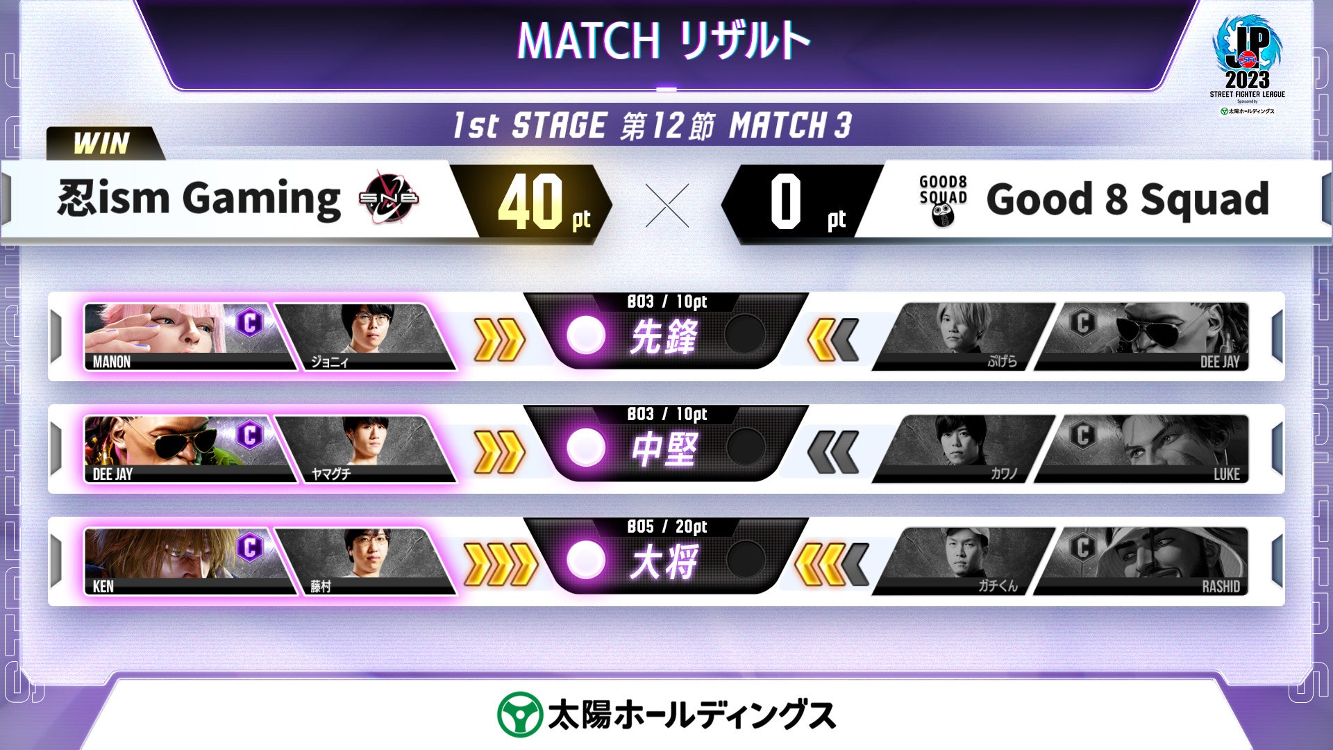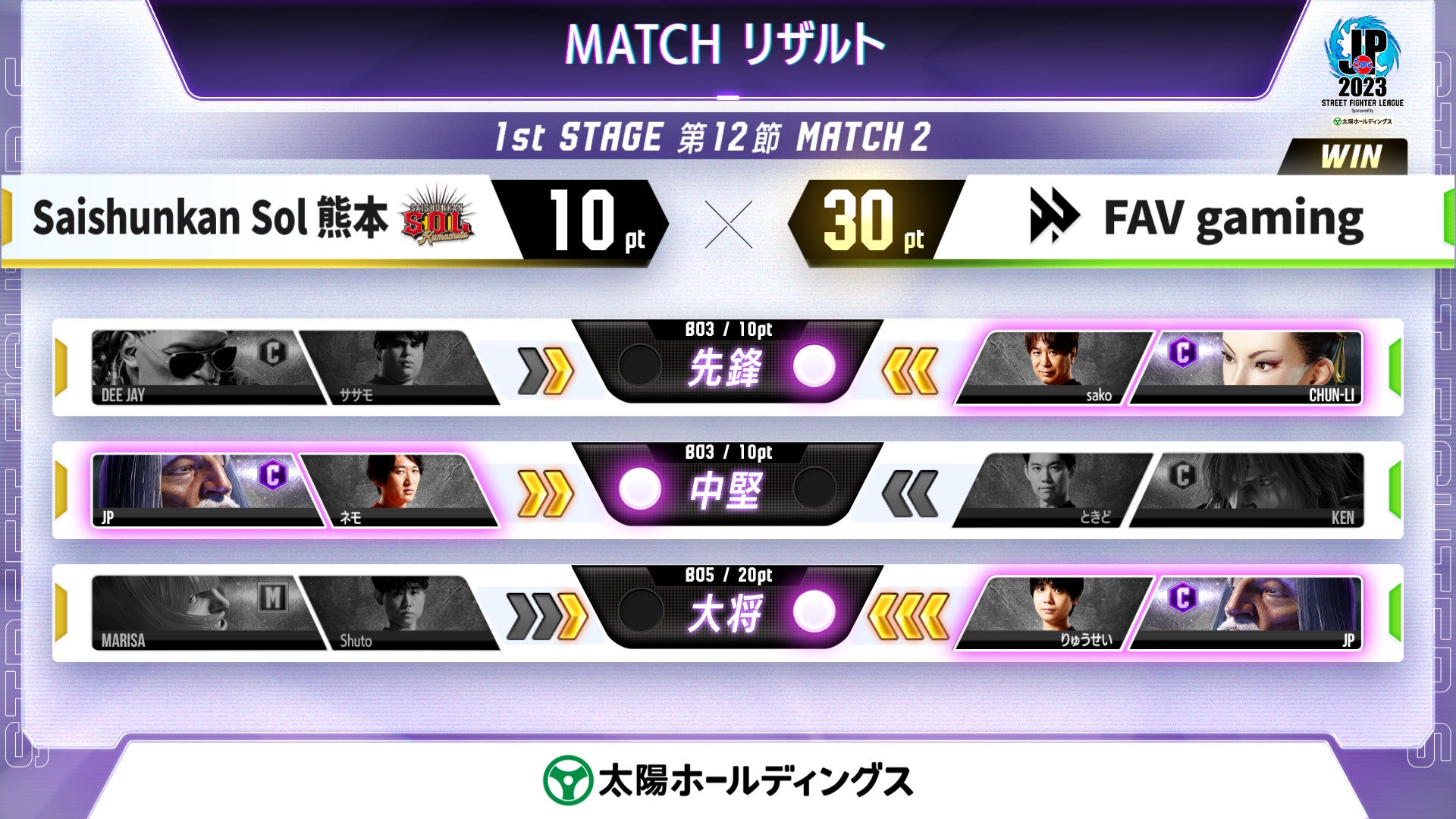 - Saishunkan Sol 熊本、FAV gaming、忍ism Gaming