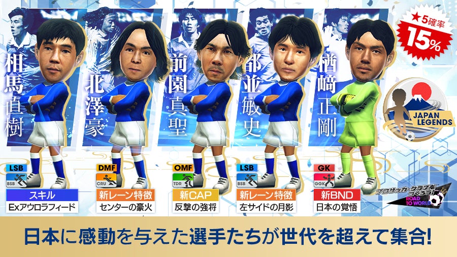 2023年9月13日から、人気のスポーツ育成シミュレーションゲーム『プロサッカークラブをつくろう! ロード・トゥ・ワールド』で、「JAPAN LEGENDS SCOUT」というイベントが開催されます。