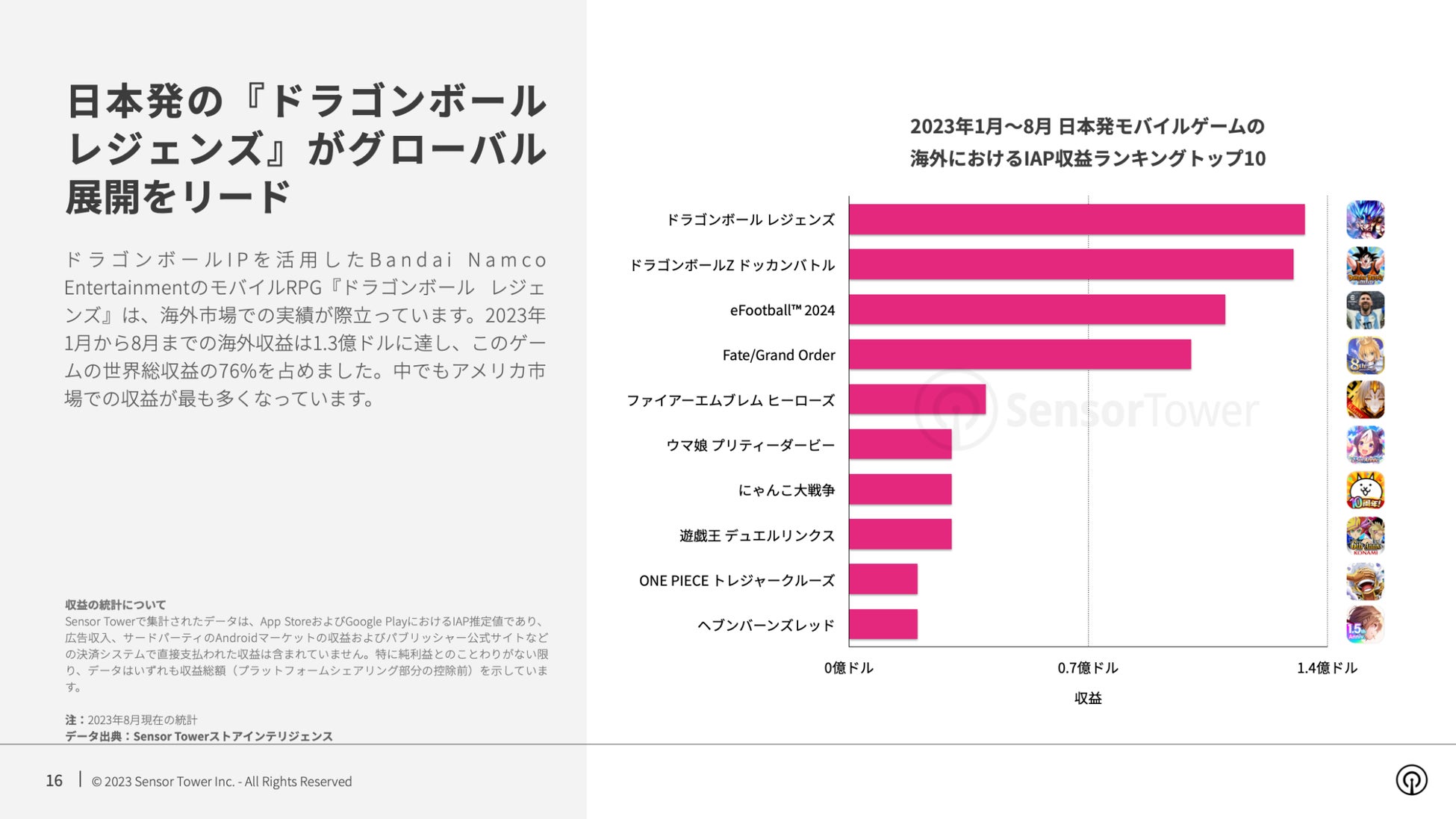 - 日本市場での海外発モバイルゲームの収益増加が際立ち、Bandai Namco EntertainmentやKAYACなどが成功している
