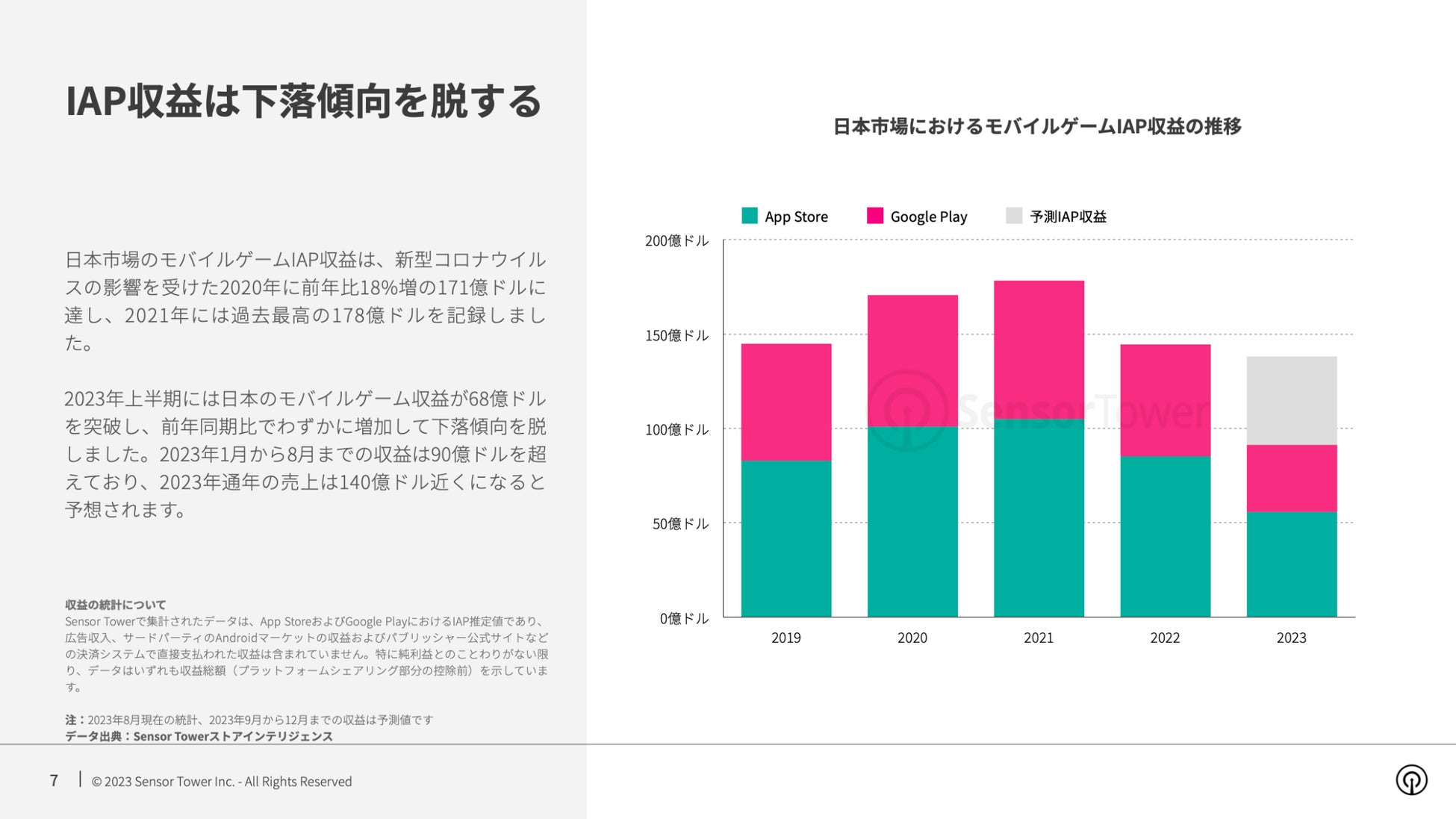 2023年には、日本のモバイルゲーム市場は成熟期に入り、ダウンロード数とIAP収益はわずかに増加し、90億ドルを超える見込みです。