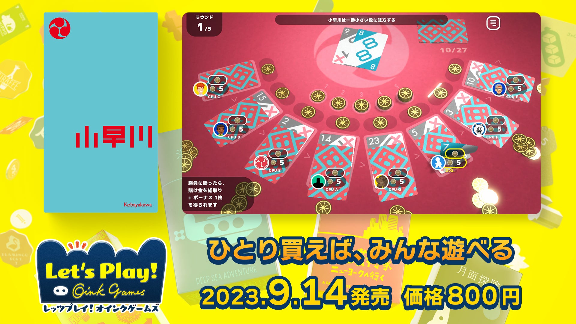 株式会社オインクゲームズは、2023年9月14日に「レッツプレイ!オインクゲームズ」のNintendo Switch版、Steam版、iOS版、Android版で有料DLC「小早川」の配信を開始しました。