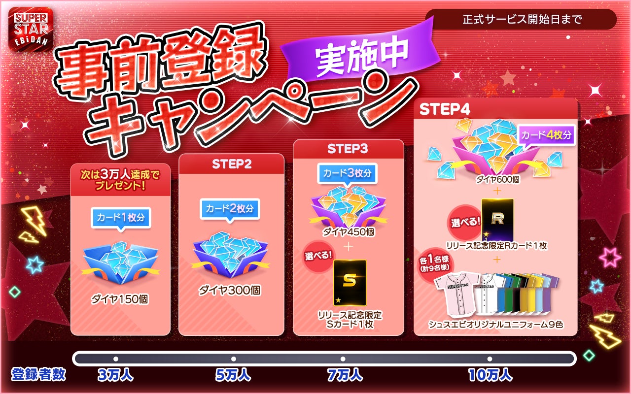 事前登録キャンペーンも実施され、登録者数に応じて様々な報酬やオリジナルグッズがもらえます。