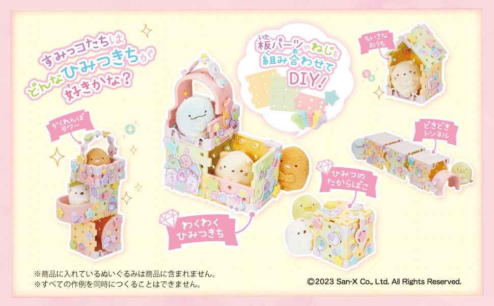 - 限定発売の「すみっコぐらし ひみつきちDIYセット」もあり、タワーやトンネル、ちいさなおうちなどを作ることができる