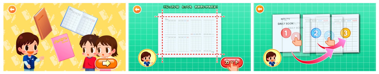 • 新ゲームは手帳作りの楽しさを体験できる3つのゲームで構成されている
