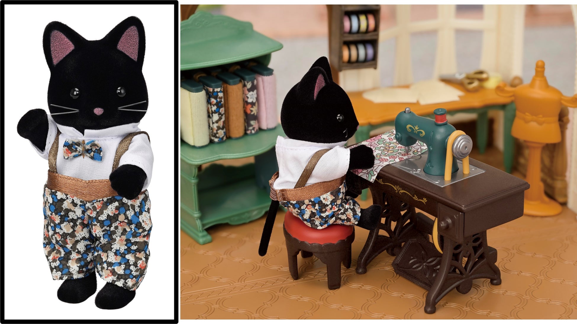株式会社エポック社は、2023年10月14日から限定販売するシルバニアファミリーの新商品「ほしぞらネコの仕立て屋さん‐リバティプリント‐」を発表しました。
