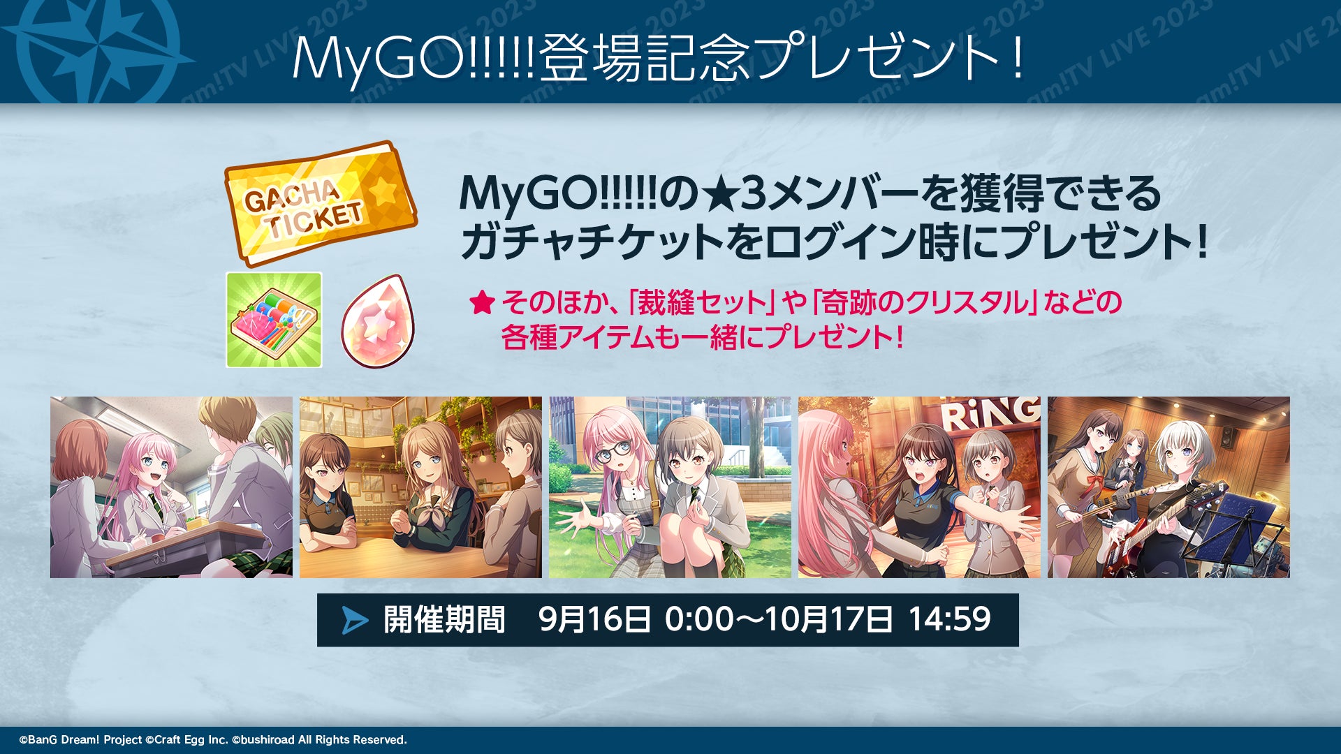 • MyGO!!!!!登場記念プレゼントや迷子たちの叫びガチャの開催が決定