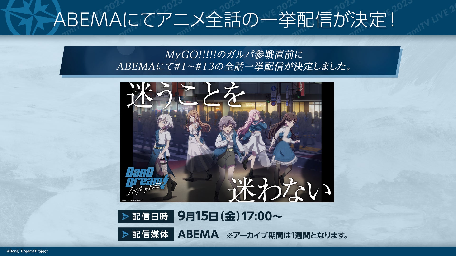 • アニメ全話の一挙放送やMyGO!!!!!の楽曲発表も