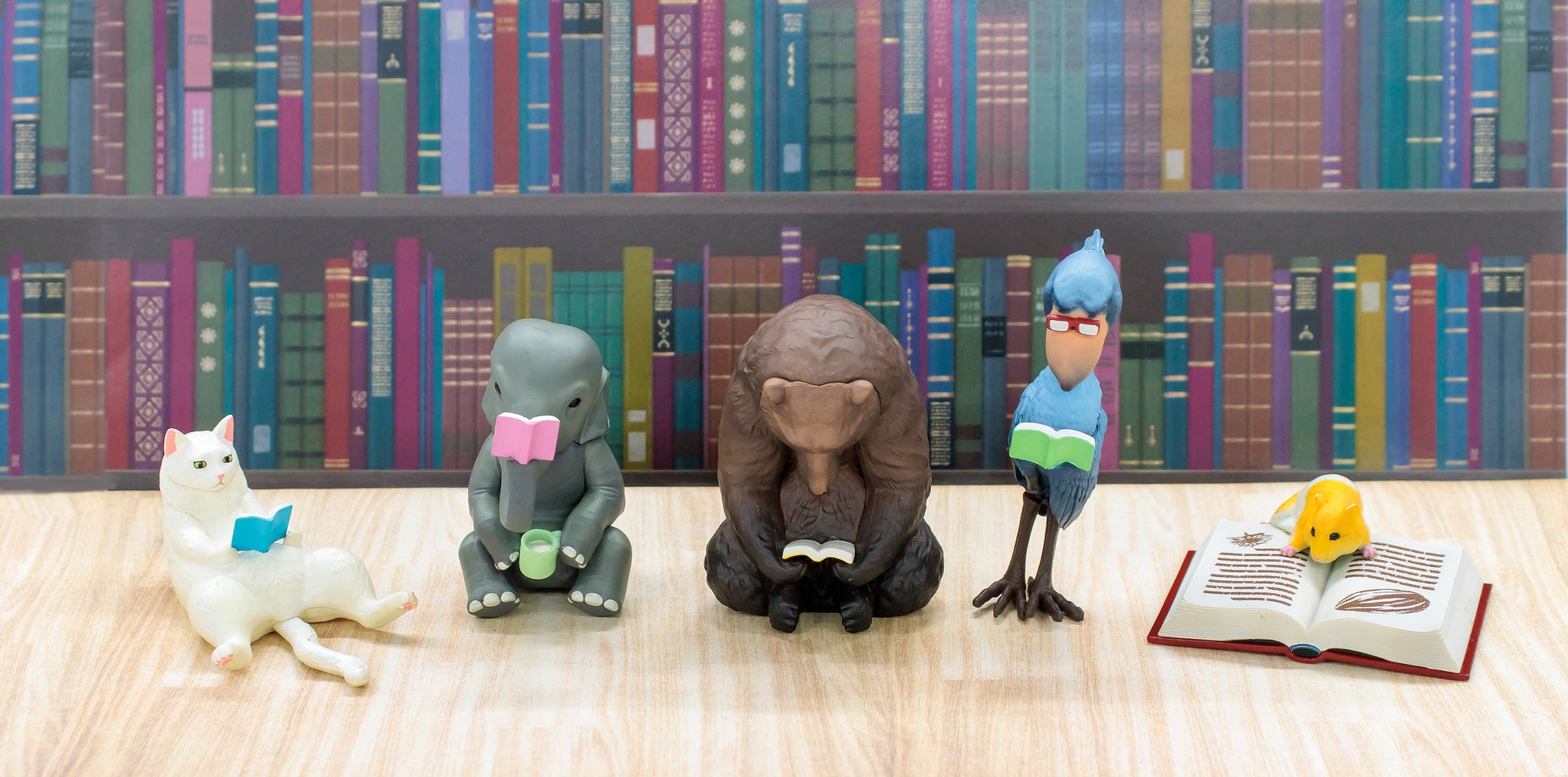 動物たちが本を読む姿が表現されており、デスクトップに飾って楽しむことができます。