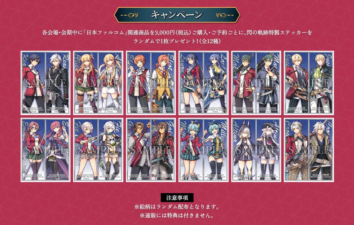 会場では、『日本ファルコム』関連商品を3,000円以上購入または予約すると、特製ステッカーがランダムでプレゼントされます。