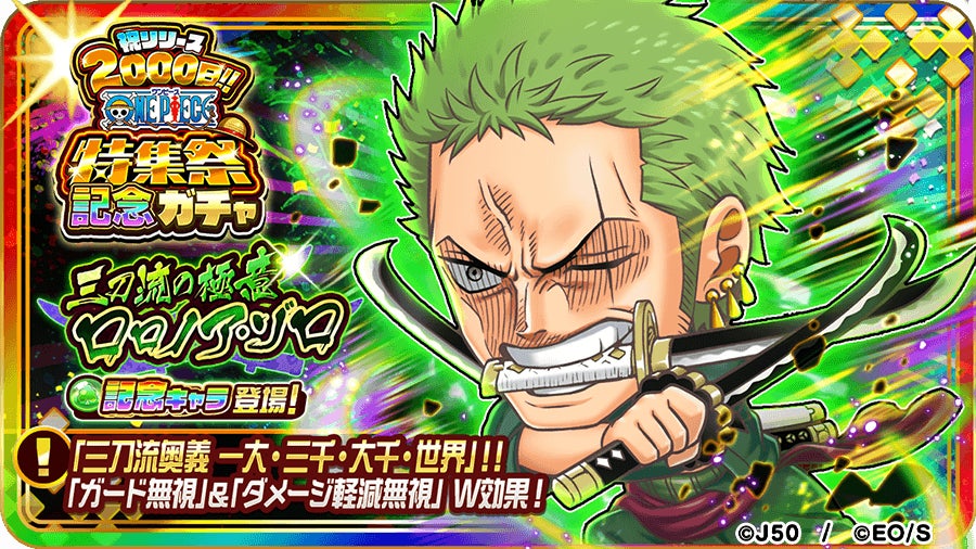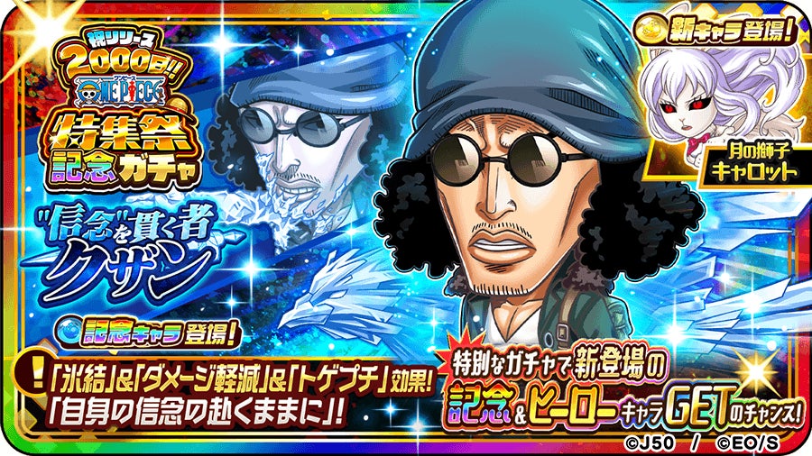 このイベントでは、『ONE PIECE』の世界が再び登場し、新キャラクターとして「三刀流の極意 ロロノア・ゾロ」「”信念”を貫く者 クザン」や「月の獅子 キャロット」が登場します。