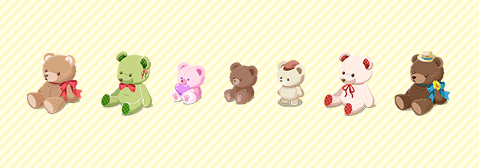 イベント限定ミッションクリアすることで、初登場の「テディベア(全8種)」を手に入れることができます。