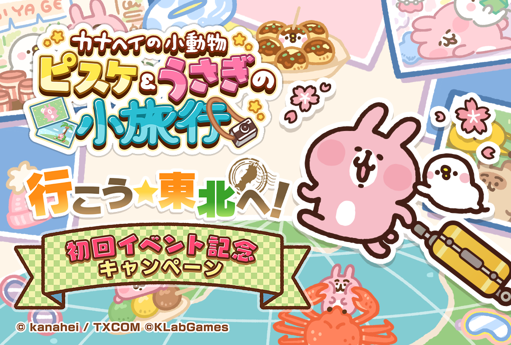 KLabが新作ゲーム『カナヘイの小動物 ピスケ&うさぎの小旅行』で、初のゲーム内イベント「行こう☆東北へ!」を4月7日から開催する。