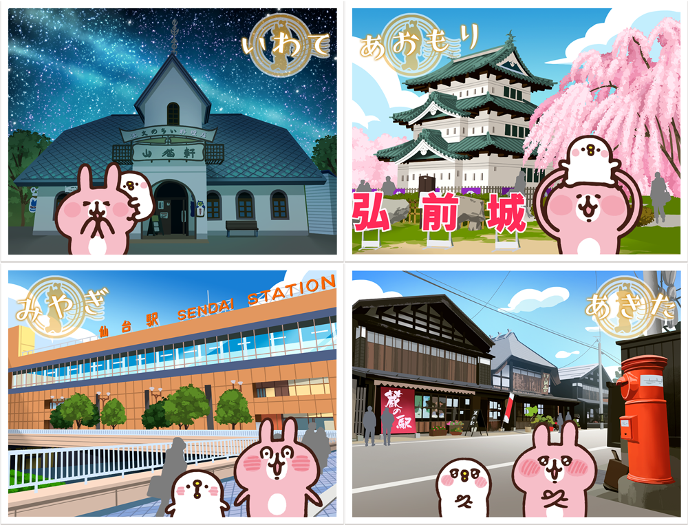 - イベントでは、カナヘイさんのキャラクター【ピスケ&うさぎ】が東北6県を巡り、旅行写真やおみやげ、ご当地グルメが手に入る