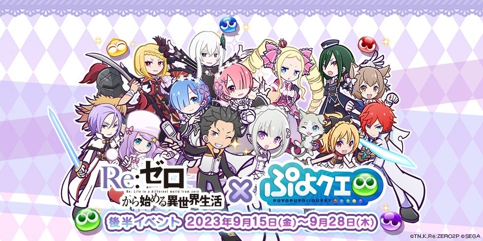 セガは、人気のパズルRPG『ぷよぷよ!!クエスト』と『Re:ゼロから始める異世界生活』のコラボレーション後半イベントを開催します。