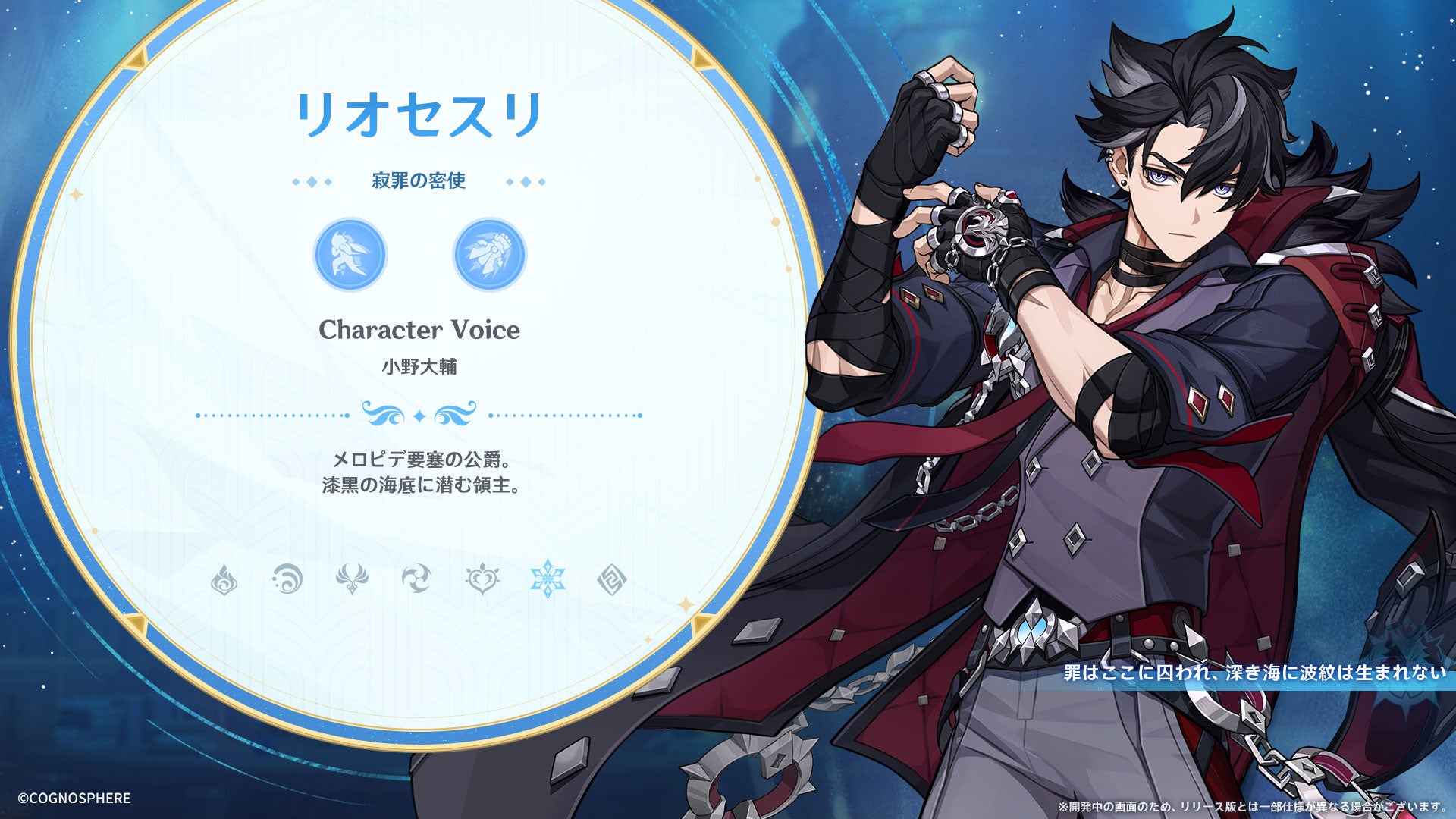 リオセスリはメロピデ要塞の公爵で、氷元素の力と法器を駆使して戦います。