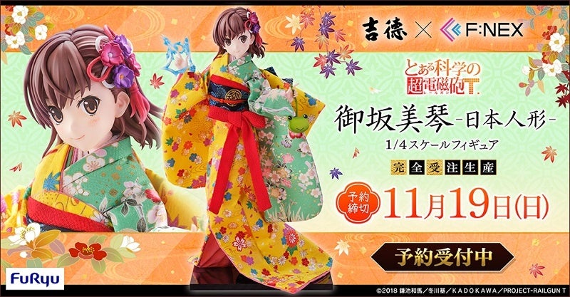 フリュー株式会社は、『F:NEX』ブランドの新商品として、吉徳とのコラボレーション商品『吉徳×F:NEX 御坂美琴 -日本人形- 1/4スケールフィギュア』の発売を決定しました。